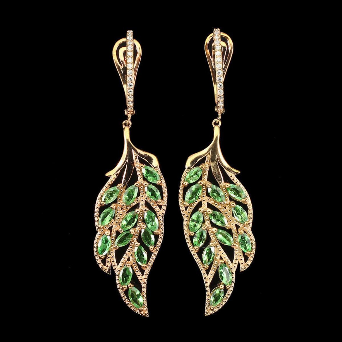 925 STERLING SILVER;PLATE-14K ROSE GOLD;MAIN STONE-TSAVORITE GARNET;TOTAL WEIGHT-13.11 GRAM (TOTAL WEIGHT OF SILVER + STONE)DIMENSION* STONE 5.0 X 2.5 MM. * CZ 1.0 MM. * FACE EARRINGS 62.0 X 10.0 MM.;MAIN STONE SHAPE-MARQUISE CUT;MAIN STONE COLOR-TOP RICH GREEN;CLARITY/GRADE-IF TO VVS;TREATMENT-UNHEATED;ORIGIN-KENYA - AFRICA;
