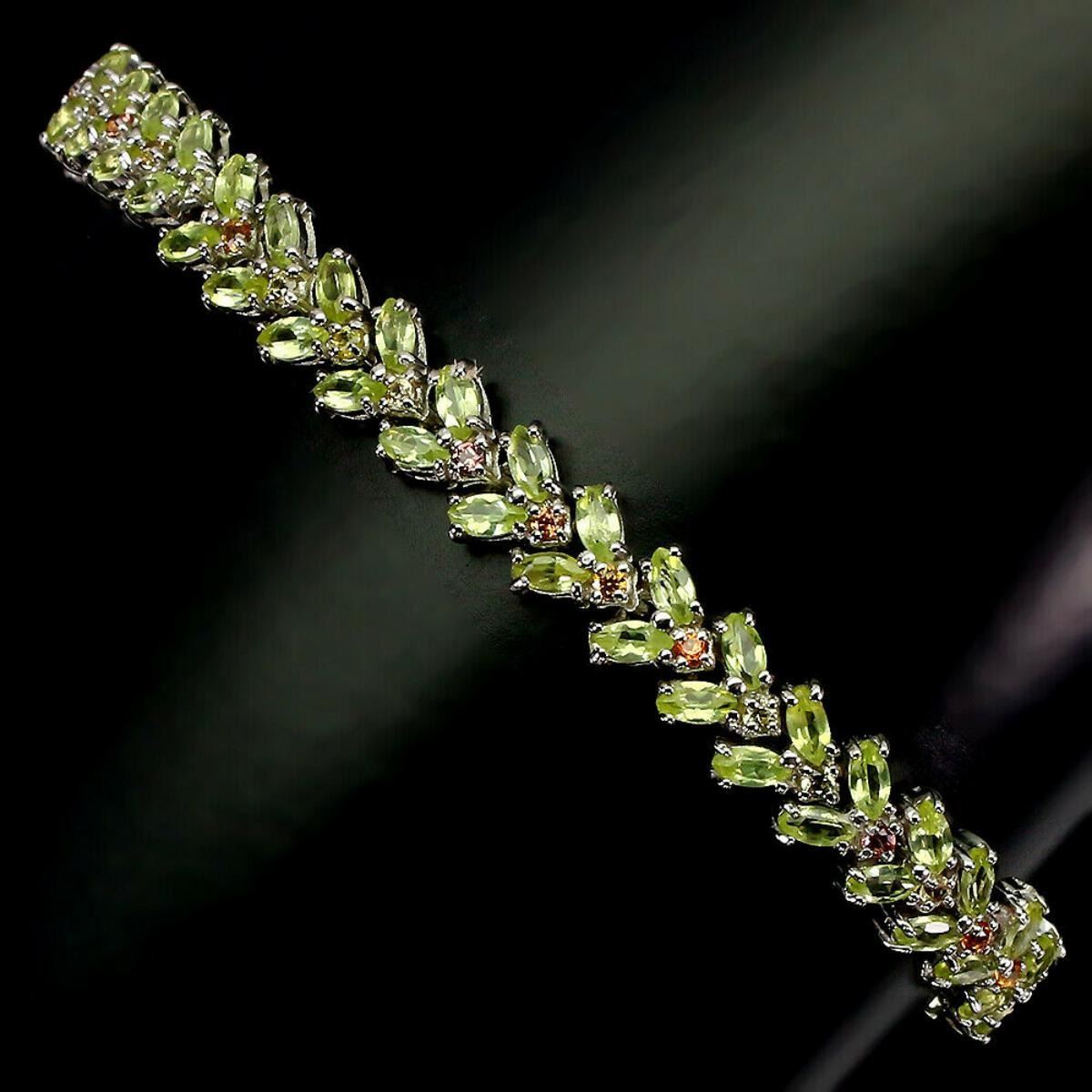 925 STERLING SILVER;PLATE-14K WHITE GOLD;LENGTH (INCHES)8;MAIN STONE-PERIDOT;OTHER GEMS-SAPPHIRE;TOTAL WEIGHT-13.94 GRAM (TOTAL WEIGHT OF SILVER + STONE)DIMENSION-* STONE 1.5 TO 4.0 X 2.0 MM. * TOTAL LENGTH 8.0 INCHES. * FACE BRACELET 185.0 X 8.0 MM.;MAIN STONE SHAPE-MARQUISE CUT;MAIN STONE COLOR- RICH GREEN;CLARITY/GRADE-IF TO VVS;TREATMENT-UNHEATED;ORIGIN-PAKISTAN;HARDNESS-6.5 - 7.0;