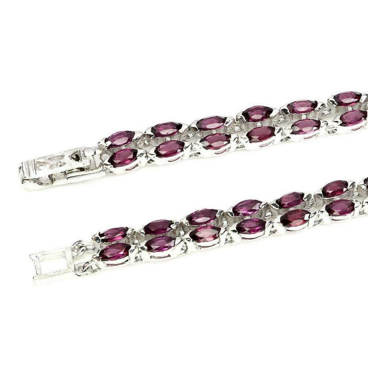 BRACELET....TYPE OF METAL925 STERLING SILVER;PLATE-14K WHITE GOLD;LENGTH (INCHES)-7.5;MAIN STONE-RHODOLITE GARNET;TOTAL WEIGHT-14.06 GRAM (TOTAL WEIGHT OF SILVER + STONE)DIMENSION* STONE 5.0 X 2.5 MM. * FACE BRACELET 165.0 X 6.0 MM.;MAIN STONE SHAPE-MARQUISE CUTMAIN STONE COLOR-TOP RICH PINK RASPBERRY;CLARITY/GRADE-IF TO VVS;TREATMENT-UNHEATED;ORIGIN-AFRICA;HARDNESS-7.0 - 7.5;