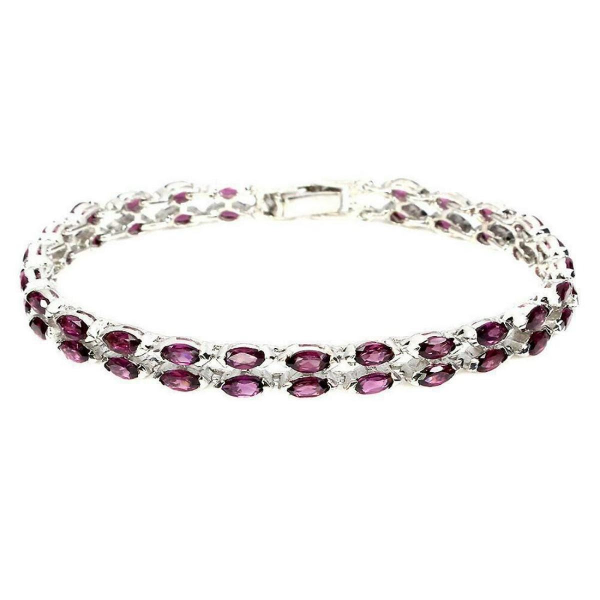BRACELET....TYPE OF METAL925 STERLING SILVER;PLATE-14K WHITE GOLD;LENGTH (INCHES)-7.5;MAIN STONE-RHODOLITE GARNET;TOTAL WEIGHT-14.06 GRAM (TOTAL WEIGHT OF SILVER + STONE)DIMENSION* STONE 5.0 X 2.5 MM. * FACE BRACELET 165.0 X 6.0 MM.;MAIN STONE SHAPE-MARQUISE CUTMAIN STONE COLOR-TOP RICH PINK RASPBERRY;CLARITY/GRADE-IF TO VVS;TREATMENT-UNHEATED;ORIGIN-AFRICA;HARDNESS-7.0 - 7.5;