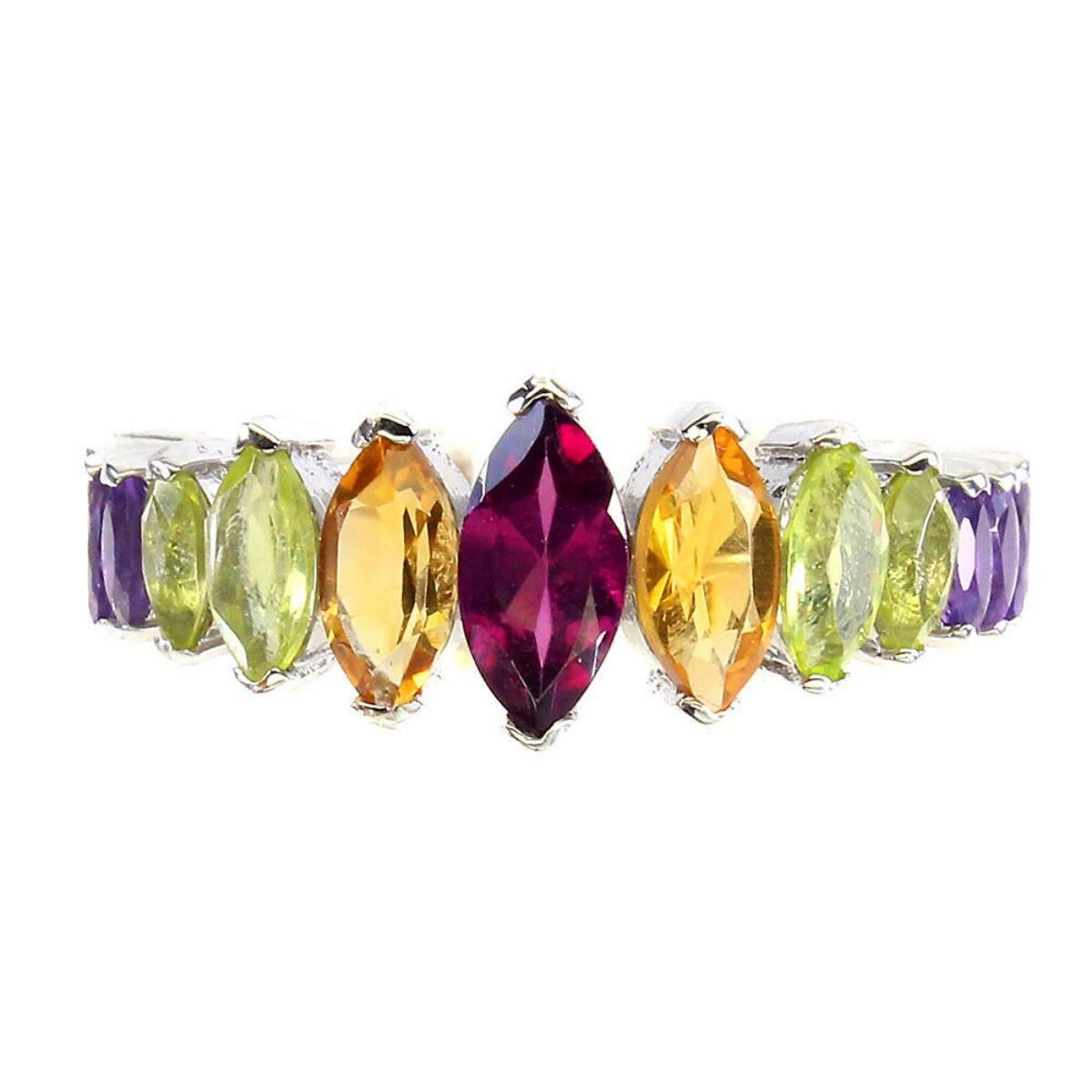 925 STERLING SILVER;PLATE14K WHITE GOLD;RING SIZE/resizable-7.5;MAIN STONE-RHODOLITE GARNETOTHER GEMS-AMETHYST, CITRINE, PERIDOTTOTAL WEIGHT-3.27 GRAM (TOTAL WEIGHT OF SILVER + STONE)DIMENSION-* STONE 4.0 X 2.0 TO 8.0 X 4.0 MM. * RING SIZE 7.5 * FACE RING- 23.0 X 9.0 MM;.MAIN STONE SHAPE-MARQUISE CUT;MAIN STONE COLOR- PINK RASPBERRY;CLARITY/GRADE-IF TO VVS;TREATMENT-UNHEATED;ORIGIN-AFRICA;HARDNESS-7.0 - 7.5;