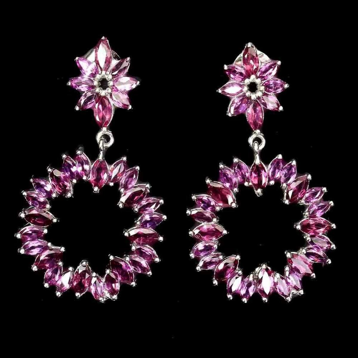 925 STERLING SILVER;PLATE-14K WHITE GOLD;MAIN STONE-RHODOLITE GARNET;TOTAL WEIGHT-5.56 GRAM (TOTAL WEIGHT OF SILVER + STONE)DIMENSION-* STONE 4.0 X 2.0 TO 5.0 X 2.5 MM.;* FACE EARRINGS- 39.0 X 22.0 MM.;MAIN STONE SHAPE-MARQUISE CUT;MAIN STONE COLOR- PINK RASPBERRY;CLARITY/GRADE-IF;TREATMENT-UNHEATED;ORIGIN-AFRICA;HARDNESS-7.0 - 7.5;