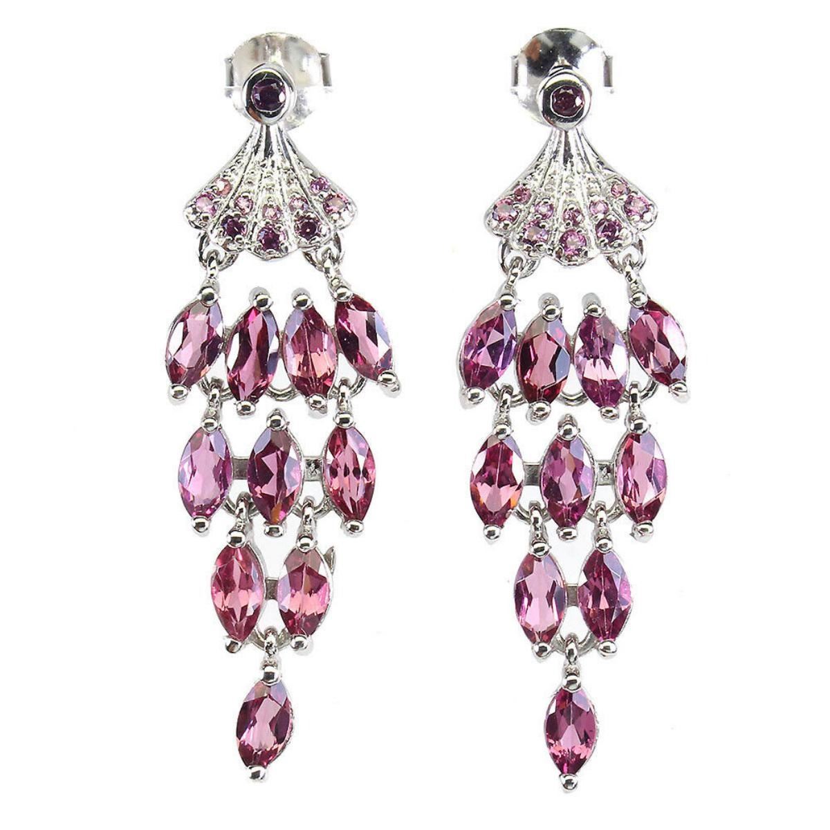 925 STERLING SILVER;PLATE-14K WHITE GOLD;MAIN STONE-RHODOLITE GARNET;TOTAL WEIGHT-6.37 GRAM (TOTAL WEIGHT OF SILVER + STONE);DIMENSION-* STONE 1.0 TO 6.0 X 3.0 MM. * FACE EARRINGS 43.0 X 14.0 MM.;MAIN STONE SHAPE-MARQUISE CUT;MAIN STONE COLOR-PINK RASPBERRY;CLARITY/GRADE-IF TO VVS;TREATMENT-UNHEATED;ORIGIN-AFRICA;HARDNESS-7;