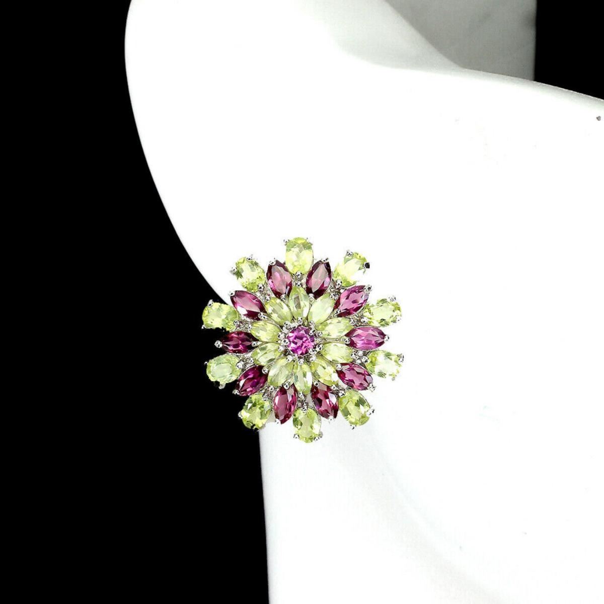 925 STERLING SILVER;PLATE-14K WHITE GOLD;MAIN STONE-RHODOLITE GARNET;OTHER GEMS-PERIDOT;TOTAL WEIGHT-6.31 GRAM (TOTAL WEIGHT OF SILVER + STONE);DIMENSION-* STONE 3.0 TO 5.0 X 2.5 MM. * FACE EARRINGS 22.0 X 21.0 MM.;MAIN STONE SHAPE-MARQUISE CUT;MAIN STONE COLOR-PINK RASPBERRY;CLARITY/GRADE-IF TO VVS;TREATMENT-UNHEATED;ORIGIN-AFRICA;HARDNESS-7;