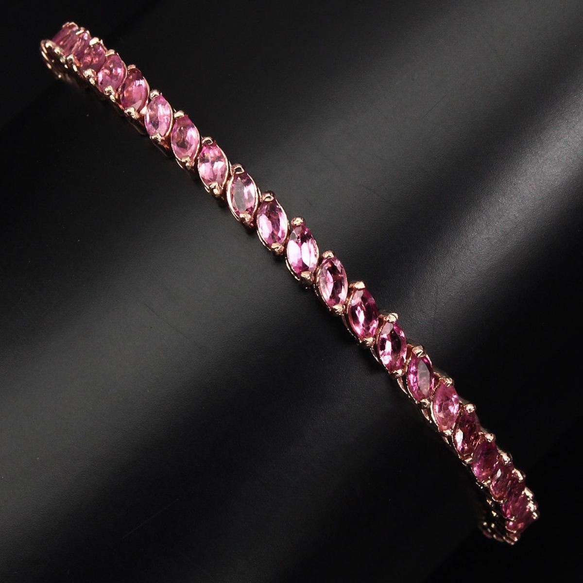 925 STERLING SILVERPLATE14K ROSE GOLD;LENGTH (INCHES)8.5MAIN STONETOURMALINEOTHER GEMSTOTAL WEIGHT49.53 CT (TOTAL WEIGHT OF SILVER + STONE)DIMENSION* STONE 5.0 X 2.5.0 MM. * FACE BRACELET 167.0 X 4.0 MM.MAIN STONE SHAPEMARQUISE CUTMAIN STONE COLORTOP RICH PINKCLARITY/GRADEIF TO VVSLUSTERRAVISHINGTREATMENTUNHEATEDORIGINBRAZILHARDNESS7.0 - 7.5