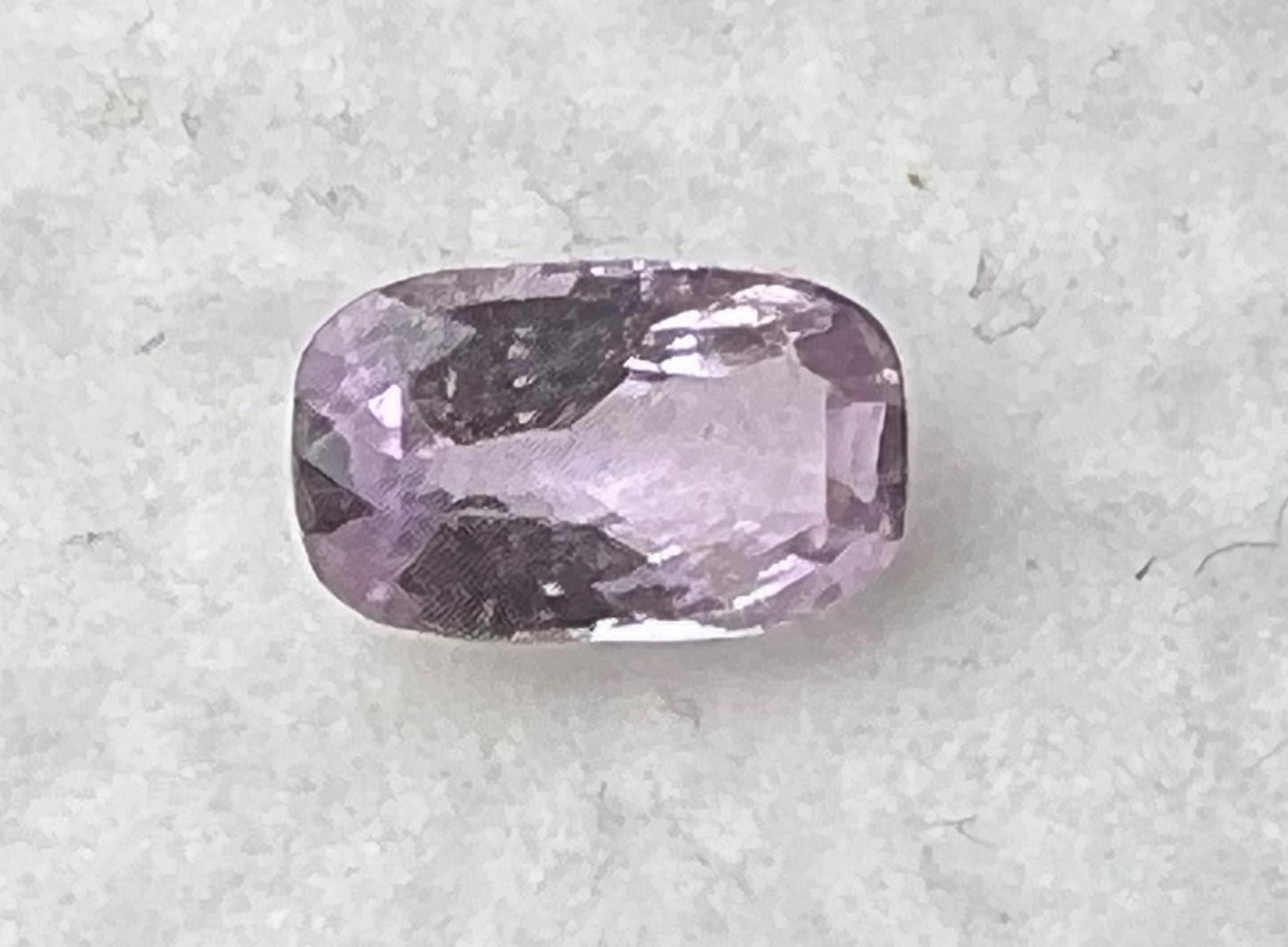 Natural Mauve Ceylon Sapphire; Weight-2.75 Cts;Size-10.19x6.13 MM; Shape- Cushion; Color - Mauve; Clarity - SI; Origin- Ceylon; Gently heated only......natural earth mined.