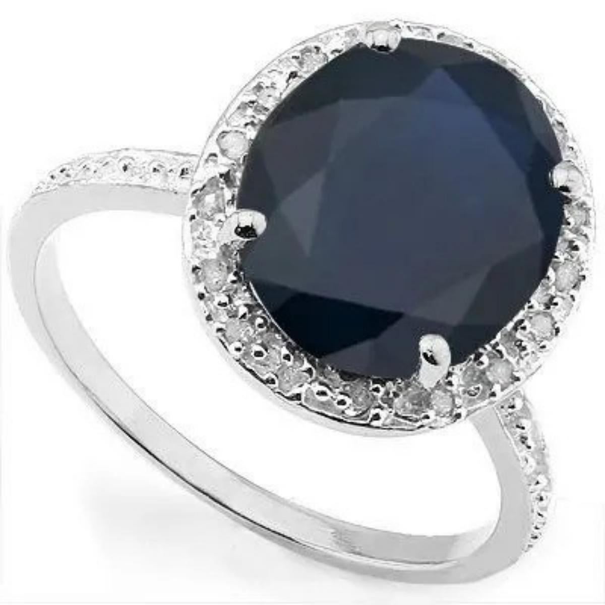 925 STERLING SILVER.........Metal Weight by Gram:2.30;Total Weight by Gram:3.42;Size:7; GENUINE BLACK SAPPHIRE....Quantity:1;Cut:OVAL CUT;Carat:5.721;Clarity:VERY GOOD;Color:DARK MIDNIGHT BLUE;GENUINE DIAMOND.....Quantity:17;Cut:ROUND CUT;Carat:0.099;Clarity:SI1-I2;Color:G-I