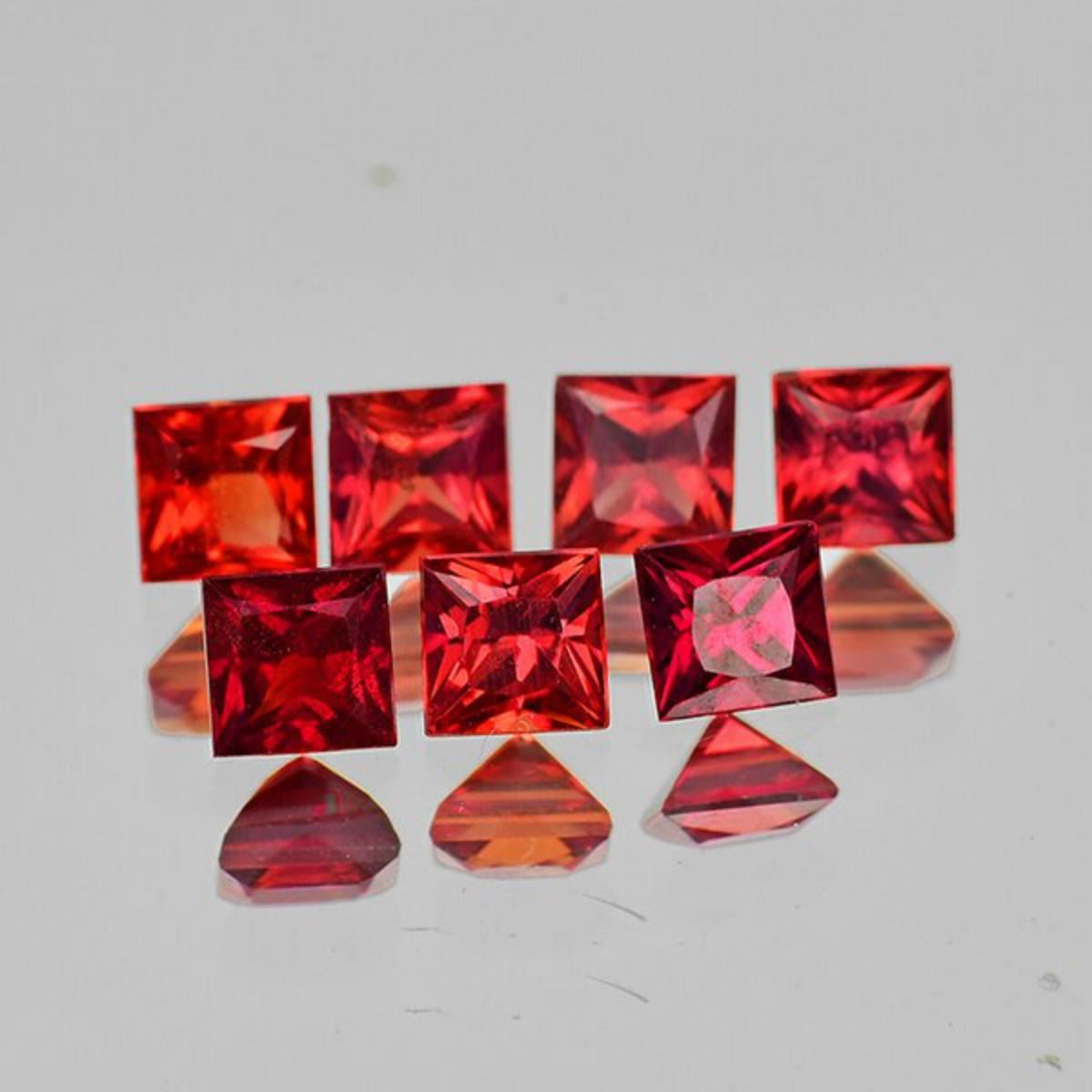 Natural Sapphire (Earthly Mined)SIZE ( L x W x D ) : 3.00 mm;COLOR : Mixed Pinkish Orange;SHAPE : Square;QUANTITY : 7 piecesLUSTER : Excellent;CLARITY : VVS;HARDNESS : 9;ORIGIN : Ceylon;