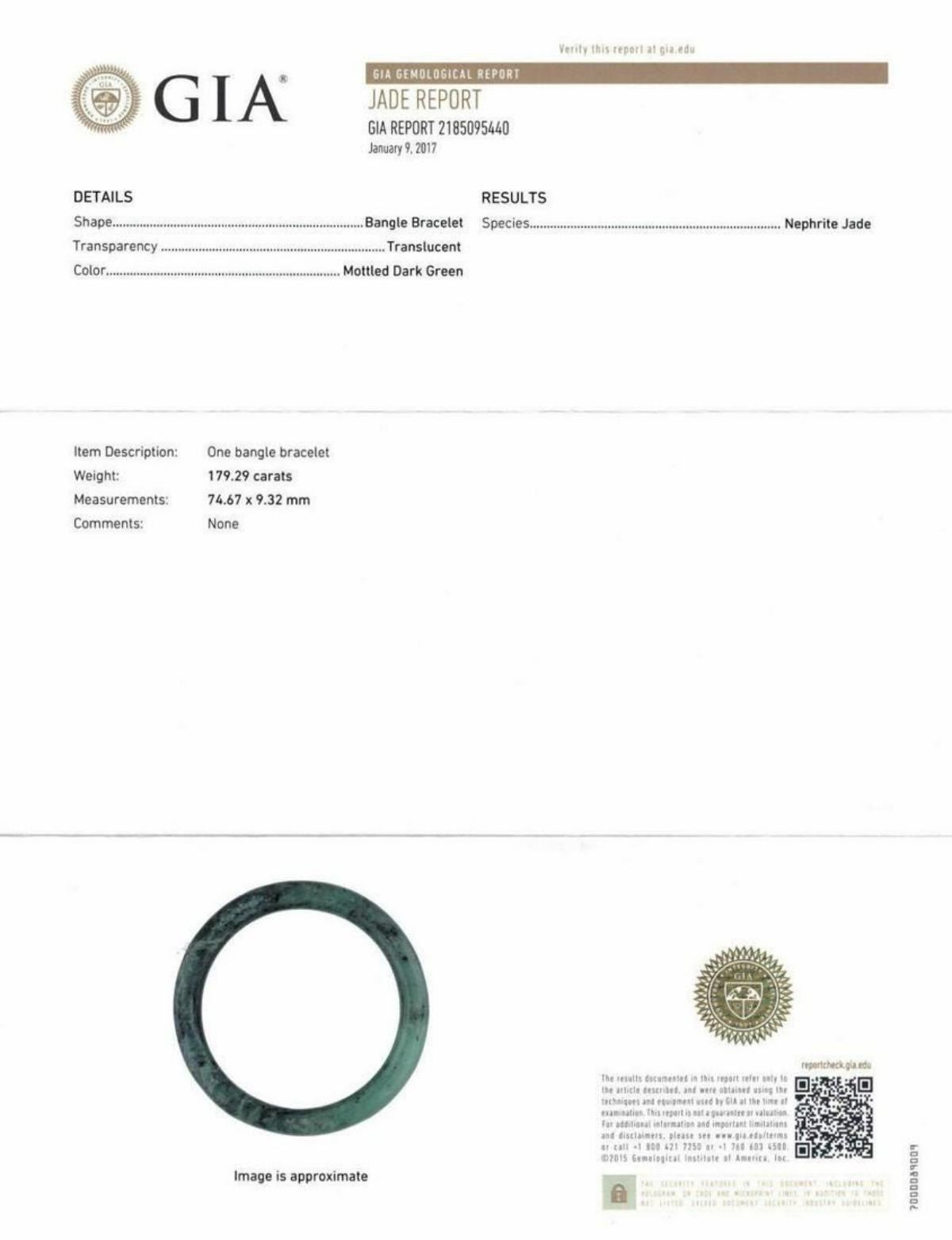 Natural Mottled Green jade Bangle - GIA Certified ......size (inner diameter) 58 MM....Completely Untreted.......weight 179.29 Carats
