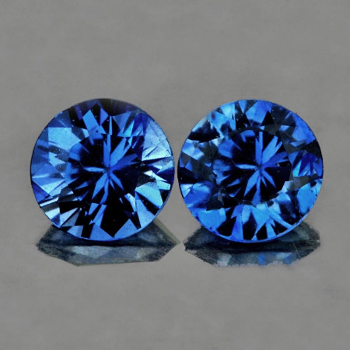 Natural Blue Sapphire SHAPE : Round (Machine Brilliant Cut) SIZE ( L x W x D ) : 3.80 mm; QUANTITY : 2 pieces ( Perfect Matched Pair) COLOR : Mozambique Blue AAA Color; CLARITY : Flawless-VVS; AAA Grade; ORIGIN : Mozambique; HARDNESS : 9; LUSTER : Best AAA Fire!!! TREATMENT : Normal Heated 100% Natural;