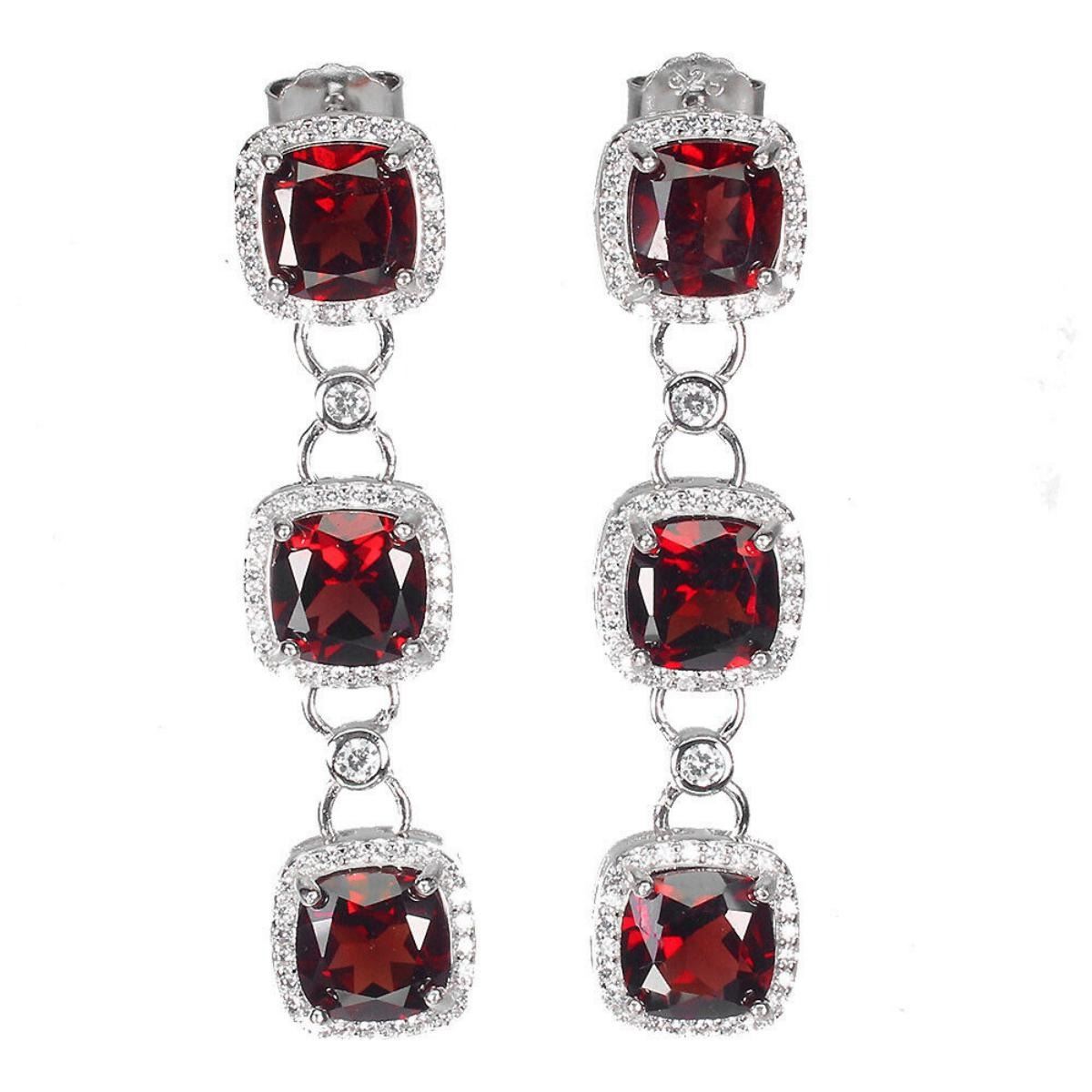 925 STERLING SILVER;PLATE-14K WHITE GOLD;MAIN STONE-MOZAMBIQUE GARNET;TOTAL WEIGHT-8.33 GRAM (TOTAL WEIGHT OF SILVER + STONE);DIMENSION-* STONE 7.0 MM.* FACE EARRINGS 43.0 X 10.0 MM.;MAIN STONE SHAPE-CUSHION;MAIN STONE COLOR-REDDISH;CLARITY/GRADE-IF TO VVS;TREATMENT-UNHEATED;ORIGIN-AFRICA;HARDNESS-7.0 - 7.5;