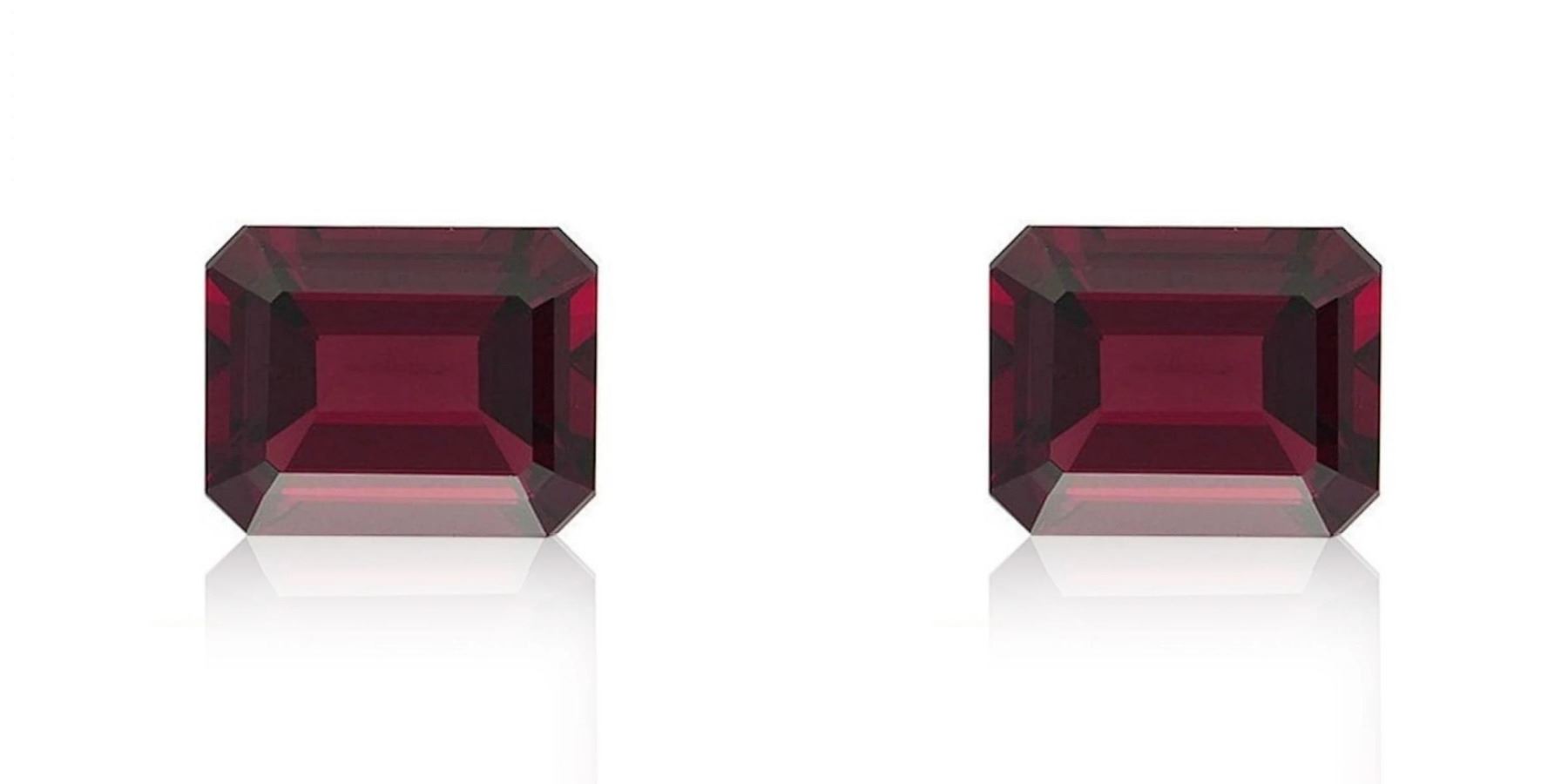 COLOR- Deep Red ; SIZE- 5X3 MM; CUTTINGS- Brilliant; LUSTER- Excellent; NUMBER OF PIECES- 2 PCS; STONE- Garnet; TREATMENT- Heated; STONE SHAPE- Octagon; COUNTRY OF ORIGIN- Mozambique; CLARITY IF - Internally Flawless;