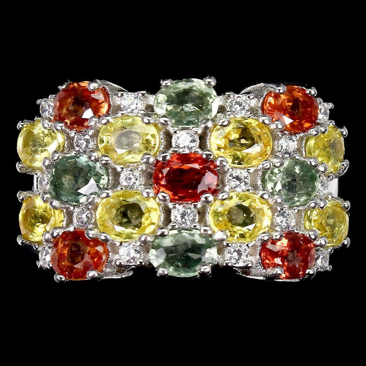 925 STERLING SILVER;PLATE-14K WHITE GOLD;RING SIZE (resizeable)7;MAIN STONESAPPHIRE;TOTAL WEIGHT-6.92 GRAM (TOTAL WEIGHT OF SILVER + STONE)DIMENSION-* STONE 4.0 X 3.0 MM. * CZ 1.0 MM. * RING SIZE 7.0 * FACE RING- 22.0 X 13.0 MM.;MAIN STONE SHAPE-OVAL CUT;MAIN STONE COLOR-MULTI-COLOR;CLARITY/GRADE-IF TO VVS;LUSTER-GORGEOUS;ORIGIN - AFRICA;HARDNESS-9;