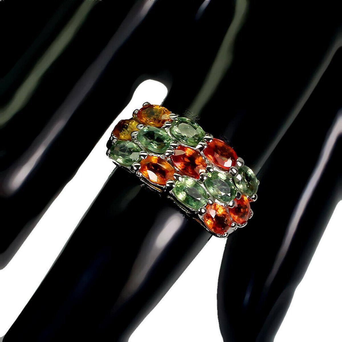 925 STERLING SILVER;PLATE-14K WHITE GOLD;RING SIZE/Resizeable-8;MAIN STONE-SAPPHIRE;TOTAL WEIGHT-4.56 GRAM (TOTAL WEIGHT OF SILVER + STONE)DIMENSION-* STONE 5.0 X 3.0 MM. * RING SIZE 8.0 * FACE RING 22.0 X 10.0 MM.;MAIN STONE SHAPE-OVAL CUT;MAIN STONE COLOR-MULTI-COLOR;CLARITY/GRADE-IF TO VVS;TREATMENT-HEATED;ORIGIN-AFRICA;HARDNESS-9.0;