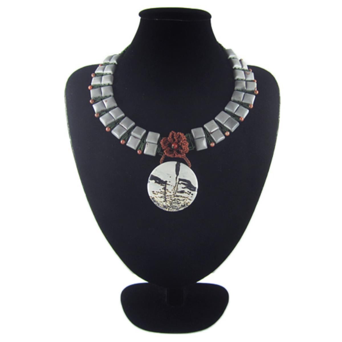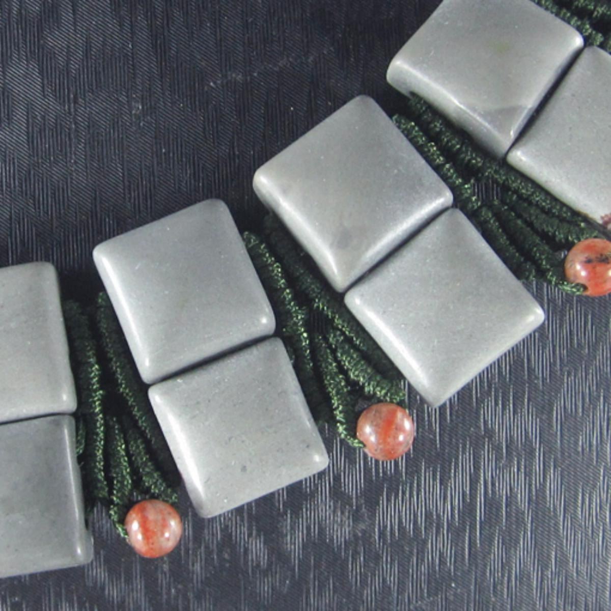 Necklace Size Ajutable 18"" inch (if range given) *Stone Name Chinese Painting Jasper *Stone Overall Dimension for each bead 48x48x7 mm (1.890x1.890x0.276 inch ) *Weight 485 ct/ 97 g/ 3.421578 oz*Handcrafted knot chainOther Stones used in this Necklace Chohua Jasper*Center Stone Properties *Locality China *Appearance opaque *Color blue Yellowish - green *Mohs Hardness 5 *Source Natural *Treatments None *Drilled YES diameter 2.5/36-3/36 inch *Other Names Chouhua Jasper~~~~~~~~~(+) Each step of our Lapidary work is under tight quality control . With the best pattern-color combination possible in mind the initial cut was done by experienced lapidary ... The last-step diamond polishing makes the surface of each bead/cab mirror-like glossy that meet the highest standard possible. Finally only those met all quality requirements are selected.
