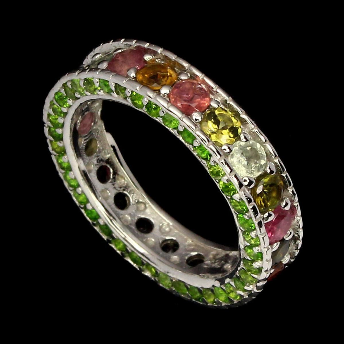 925 STERLING SILVER;PLATE14K WHITE GOLDRING SIZE-6.5;MAIN STONE-TOURMALINE;OTHER GEMS-CHROME DIOPSIDE;TOTAL WEIGHT-26.42 CT (TOTAL WEIGHT OF SILVER + STONE)DIMENSION* STONE 1.5 TO 3.0 MM. * RING SIZE 6.5 * FACE RING 23.0 X 5.0 MM.;MAIN STONE SHAPE-ROUND CUT;MAIN STONE COLOR-MULTI-COLOR;CLARITY/GRADE-IF TO VVS;LUSTER-RAVISHING;TREATMENT-UNHEATED;ORIGIN-BRAZIL;HARDNESS-5;