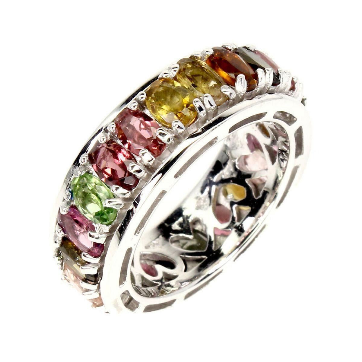 925 STERLING SILVER;PLATE-14K WHITE GOLD;RING SIZE-8;MAIN STONE-TOURMALINETOTAL WEIGHT-7.6 GRAM (TOTAL WEIGHT OF SILVER + STONE)DIMENSION* STONE 5.0 X 3.0 MM. * RING SIZE 8.0 * FACE RING 25.0 X 8.0 MM.;MAIN STONE SHAPE-OVAL CUT;MAIN STONE COLOR-MULTI-COLOR;CLARITY/GRADE-IF TO VVS;TREATMENT-UNHEATED;ORIGIN-BRAZIL;HARDNESS-7.0-7.5;