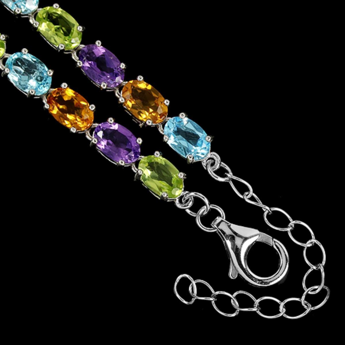 GENUINE AMETHYST PERIDOT TOPAZ CITRINE 925SILVER BRACELET 14K WHITE GOLD COATING; LENGTH OF ITEM (Inch.) 8.50 ITEM QUANTITY -1; STONE SHAPE -OVAL PORTUGUESE CUT; STONE DIMENSION -6 X 4 MM.; ITEM WEIGHT -9.8 GRAM; COLOR -MULTI COLOR; CLARITY- VVS - VS; LUSTER -ALLURING; TREATMENT -IRRADIATION UNHEATED; ORIGIN OF STONE -UNHEATED IRRADIATION; HARDNESS -6.5 - 8.0