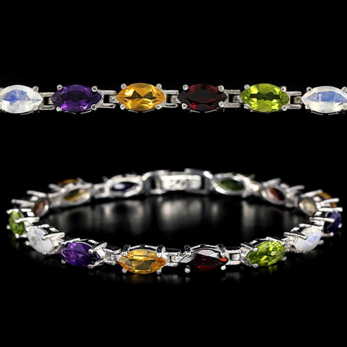 Natural PERIDOT GARNET CITRINE MOONSTONE AMETHYST STERLING 925 SILVER BRACELET 7.25; STONE SHAPE-MARQUISE PORTUGESE CUT;STONE DIMENSION10 X 5 MM.;MAIN STONE WEIGHT- 13.24 CARAT...;COLORMULTI COLOR;CLARITYIF - VVS;LUSTERDAZZLING;TREATMENT-UNHEATED IRRDIATION;ORIGIN OF STONEASIA,CAMBODIA,SRILANKA BRAZIL;HARDNESS6.5 - 8.0;OTHERTOTAL 15.57 G.