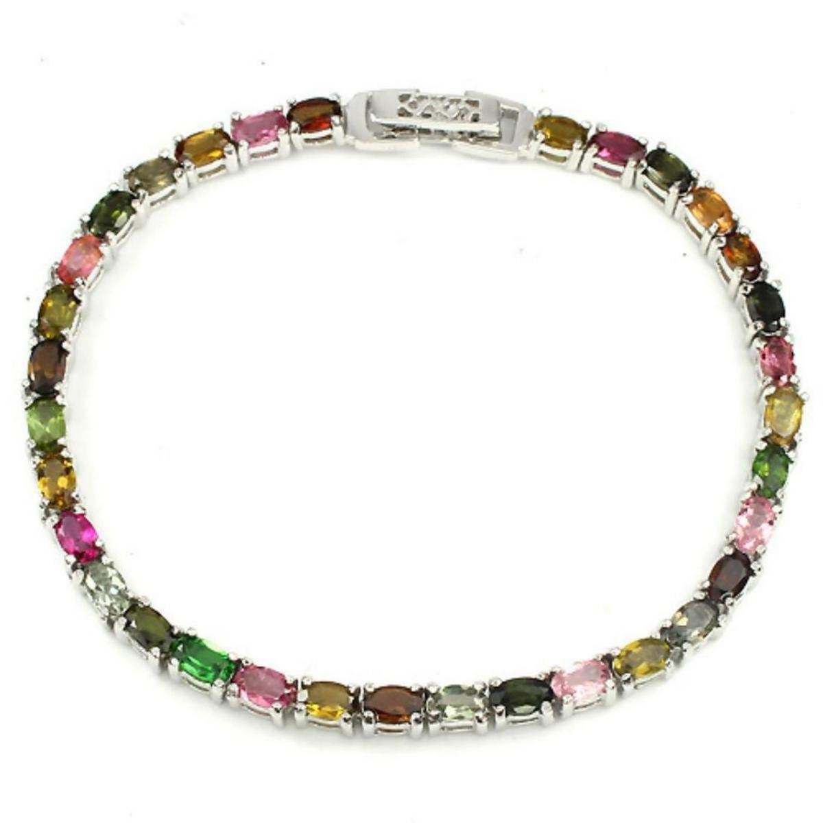 FANCY TOURMALINE CHROME DIOPSIDE (NATURAL) 14K WHITE GOLD COATING 925 SILVER BRACELETUNIT OF ITEM (S):1 PIECEWEIGHT (CT.):65.54 CT. (total weight of silver + stone)DIMENSION:* STONE 5.0 X 3.0 MM. * LENGTH 7.5 INCHES. * FACE BRACELET 170.0 X 4.0 MM.SHAPE/CUT:OVAL FACETCOLOR:TOP FANCY COLORSCLARITY/GRADE:TRANSPARENTLUSTER:GORGEOUSTREATMENT:UNHEATEDORIGIN:BRAZIL RUSSIAHARDNESS:5.0 - 7.5