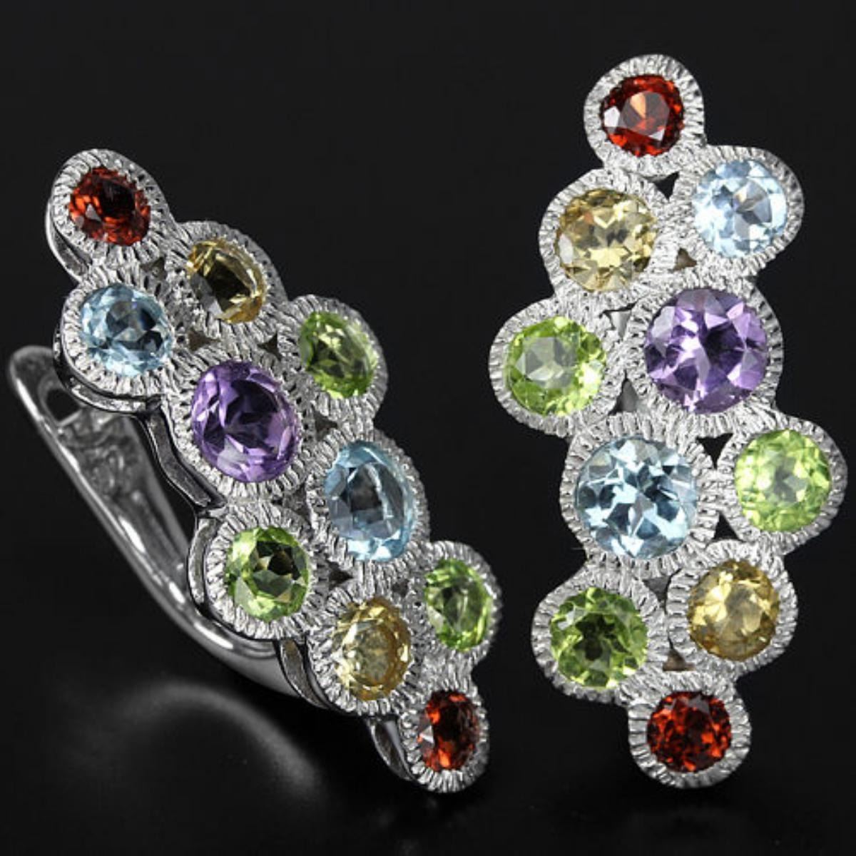 GENUINE TOPAZ GARNET PERIDOT AMETHYST 925 SILVER EARRING 14K WHITE GOLD COATING; STONE SHAPE-ROUND;STONE DIMENSION5 MM. , 4 MM. , 3.5 MM.;ITEM WEIGHT-9 GRAM;COLORMULTI COLOR;CLARITYIF VVS TO VS;LUSTER-DAZZLING;TREATMENT-IRRADIATION NATURAL UNHEATED;ORIGIN OF STONE- AFRICA,CAMBODIA,ASIA BRAZIL;HARDNESS6.5 - 8;OTHERFACE OF EARRING 30 X 13 MM.