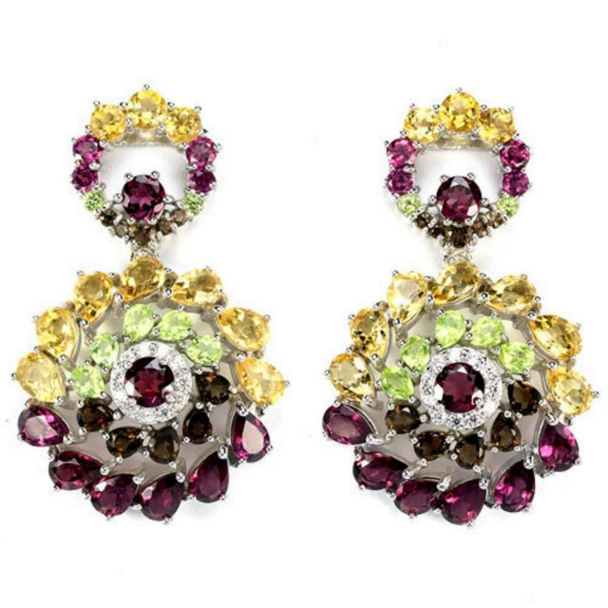 NATURAL RHODOLITE GARNET PERIDOT CITRINE CZ 925 SILVER EARRING 14K WHITE GOLD COATING; STONE SHAPE-PEAR ROUND;STONE DIMENSION-6 X 4 MM. , 4 X 3 MM. , 5 MM. , 4 MM. , 3.5 MM. , 3 MM. , 2.5 MM. , 2 MM.;ITEM WEIGHT-19.8 GRAM (Note - Heavy Earrings)COLOR-MULTI COLOR;CLARITY-IF VVS TO VS;LUSTER-DAZZLING;TREATMENT-NATURAL UNHEATED-ORIGIN OF STONE-AFRICA, BRAZIL ASIA;HARDNESS-6.5 - 7.5;FACE OF EARRING -44 X 28 MM. ;WHITE CUBIC ZIRCONIA 1.5 MM.