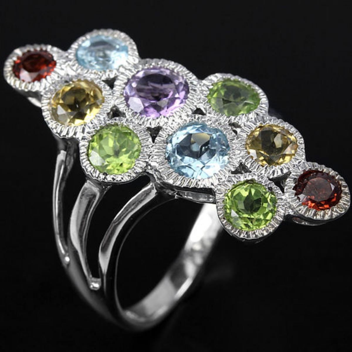 Natural TOPAZ GARNET PERIDOT CITRINE AMETHYST 925SILVER RING 14K WHITE GOLD COATING; RING SIZE-7.50 ( can be resized )STONE SHAPE-ROUND;STONE DIMENSION-5 MM. , 4 MM. , 3.5 MM.;ITEM WEIGHT-4.6 GRAM;COLOR-MULTI COLOR;CLARITY- IF VVS TO VS;TREATMENT-IRRADIATION NATURAL UNHEATED;ORIGIN OF STONE -AFRICA,CAMBODIA,ASIA BRAZIL;HARDNESS-6.5 - 8;OTHERFACE OF RING 29 X 14 MM.;