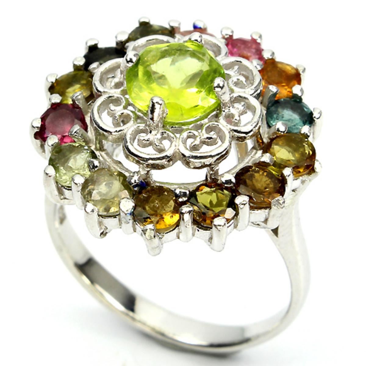 PERIDOT TOURMALINE (NATURAL) 14K WHITE GOLD COATING 925 SILVER RINGUNIT OF ITEM (S):1 PIECE;WEIGHT (CT.):31.83 CT. (total weight of silver + stone)DIMENSION:* STONE 4.0 TO 7.0 MM. * RING SIZE 9.5 * FACE RING 22.0 MM.SHAPE/CUT:ROUND FACETCOLOR:TOP FANCY COLORSCLARITY/GRADE:IF TO VVS TRANSPARENTLUSTER:GORGEOUSTREATMENT:UNHEATEDORIGIN:PAKISTAN BRAZILHARDNESS:6.5 - 7.5