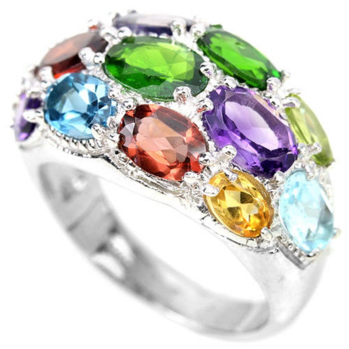 CHROME DIOPSIDE TOPAZ PERIDOT IOLITE 925 SILVER RING 14K WHITE GOLD COATING; RING SIZE 7.50 ; ITEM QUANTITY 1 STONE SHAPE OVAL PORTUGUESE CUT STONE DIMENSION 7 X 5 MM. , 6 X 4 MM. 5 X 3 MM. ITEM WEIGHT 6.6 GRAM COLOR MULTI COLOR CLARITY IF, VVS - VS LUSTER ALLURING TREATMENT UNHEATED IRRADIATION ORIGIN OF STONE BRAZIL, ASIA, CAMBODIA AFRICA HARDNESS 6.5 - 8.0 FACE OF RING 24 X 13 MM.