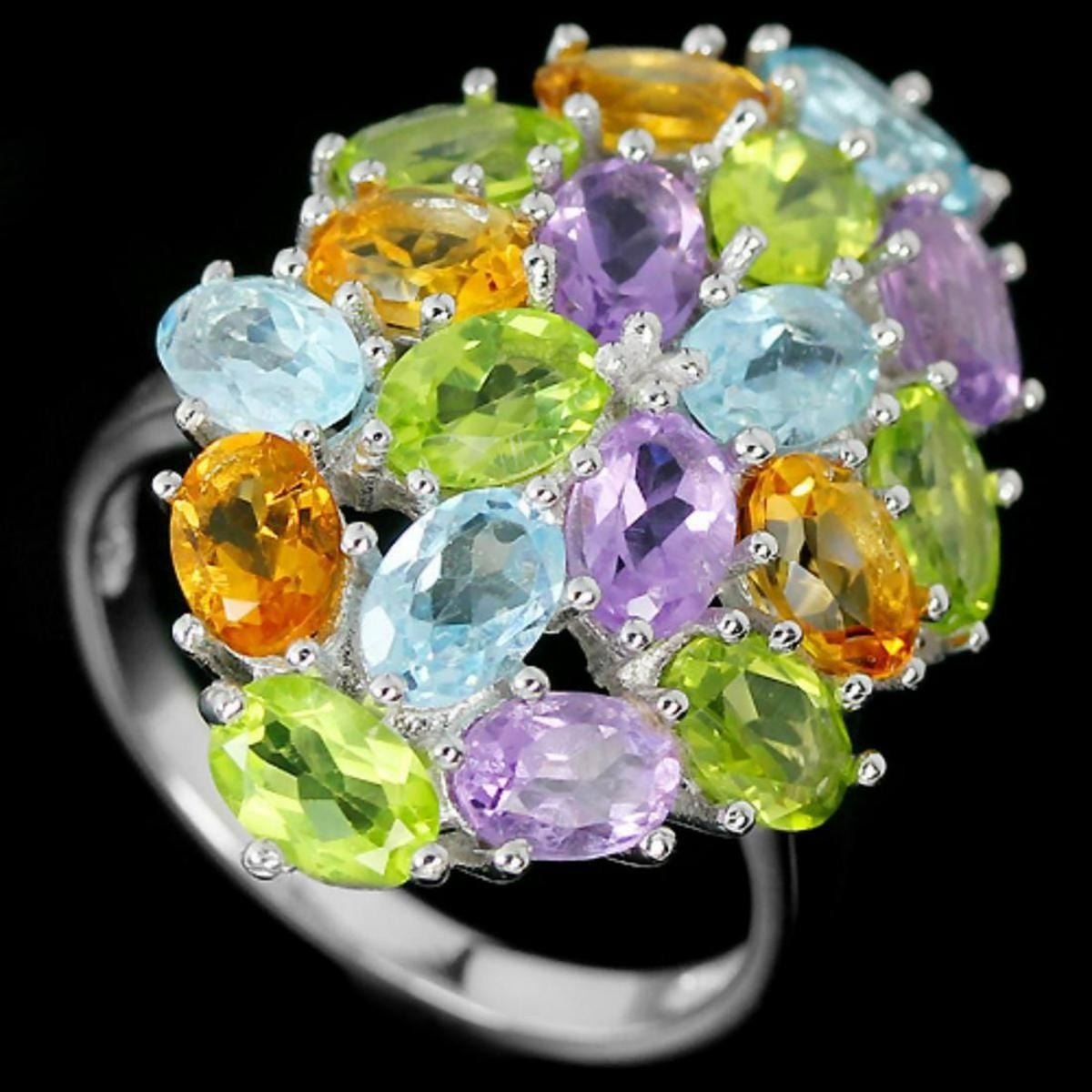 GENUINE TOPAZ AMETHYST PERIDOT CITRINE 925 SILVER RING 14K WHITE GOLD COATING; STONE SHAPEOVAL PORTUGESE CUTSTONE DIMENSION6 X 4 MM.MAIN STONE WEIGHT9.84 CARATCOLORMULTI COLORCLARITYIF - VVSLUSTERDAZZLINGTREATMENTUNHEATED IRRADIATIONORIGIN OF STONEAFRICA, BRAZIL ASIAHARDNESS6.5 - 8.0OTHERFACE OF RING 30 X 20 MM. TOTAL 7.07 G.