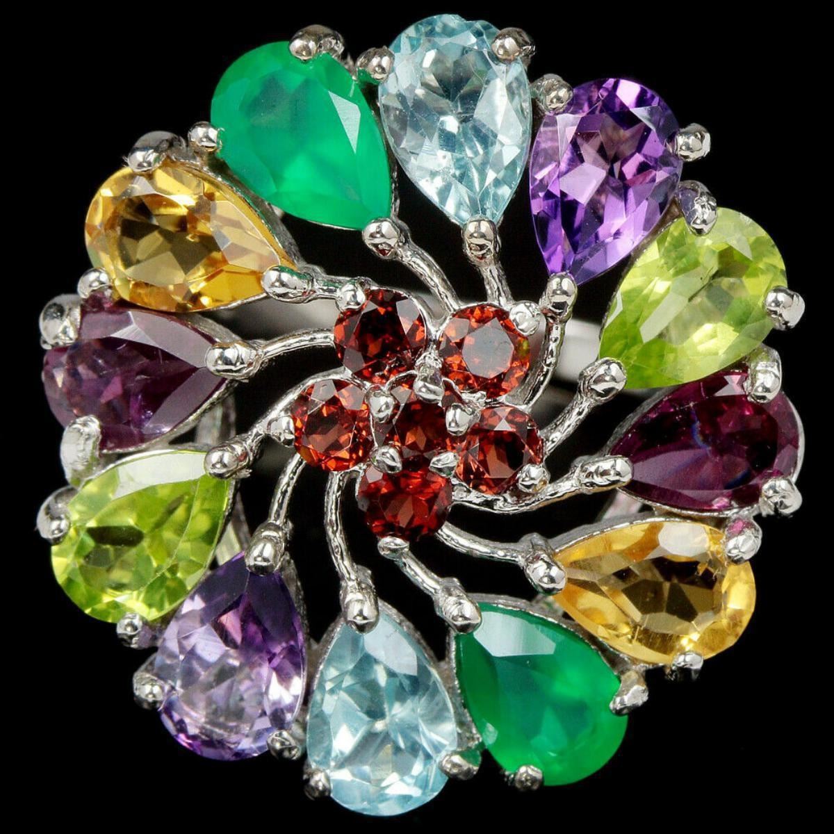925 sterling silverwith 14k gold plated....natural TOPAZ AMETHYST CITRINE RHODOLITE PERIDOT & GARNET .....ring size 7 (resizeable); Total Carat Weight (TCW):21.5