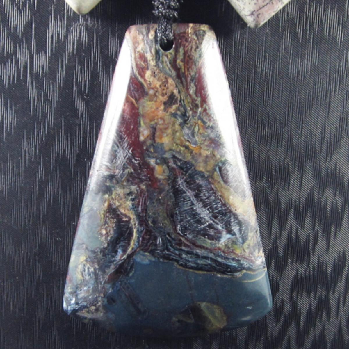 Necklace Size Ajutable 20-27 inch (if range given) *Stone Name Pietersite *Stone Overall Dimension for each bead 46x31x7 mm (1.811x1.220x0.276 inch ) *Weight 330 ct/ 66 g/ 2.328084 ozOther Stones used in this Necklace Chinese Painting Jasper*Center Stone Properties *Locality Namibia *Appearance opaque *Color Chatoyant Golden Yellow Red and blue *Mohs Hardness 7 *Source Natural *Treatments None *Drilled YES diameter 2.5/36-3/36 inch *Other Names~~~~~~~~~(+) Each step of our Lapidary work is under tight quality control . With the best pattern-color combination possible in mind the initial cut was done by experienced lapidary ... The last-step diamond polishing makes the surface of each bead/cab mirror-like glossy that meet the highest standard possible. Finally only those met all quality requirements are selected.