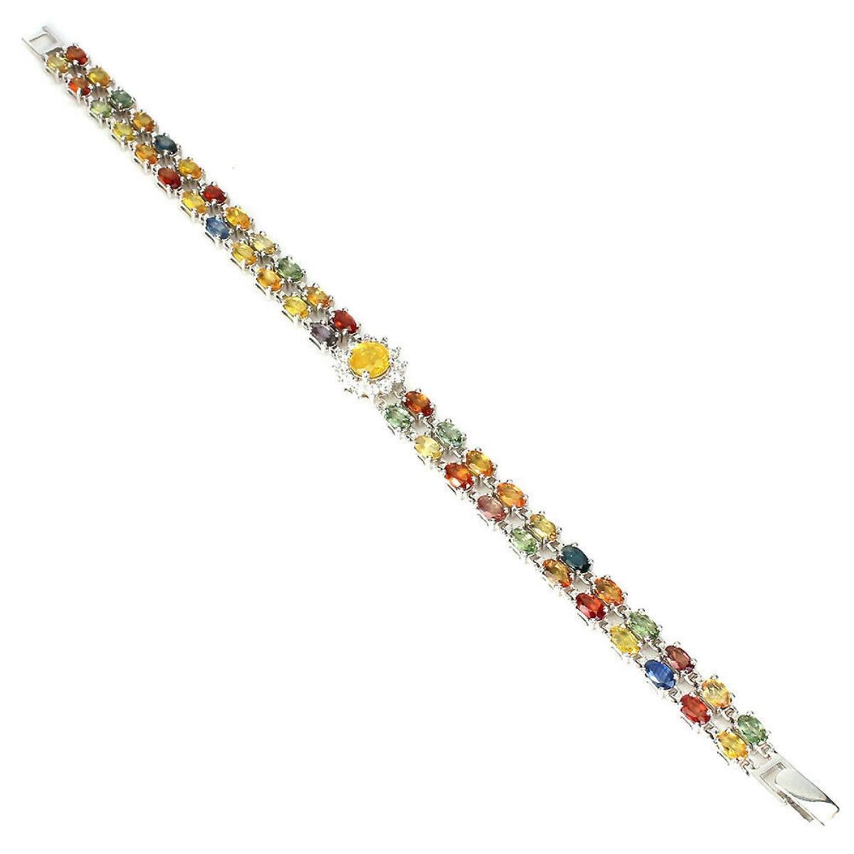 925 STERLING SILVER;PLATE-14K WHITE GOLD;LENGTH (INCHES)-7.5;MAIN STONE-SAPPHIRE;TOTAL WEIGHT-15.38 GRAM (TOTAL WEIGHT OF SILVER + STONE);DIMENSION-* STONE 5.0 X 3.0 TO 6.0 MM.* LENGTH 18.0 INCHES.* FACE BRACELET 170.0 X 11.0 MM.;MAIN STONE SHAPE-ROUND; MAIN STONE COLOR-YELLOW;TREATMENT-YES;HARDNESS-9.0;