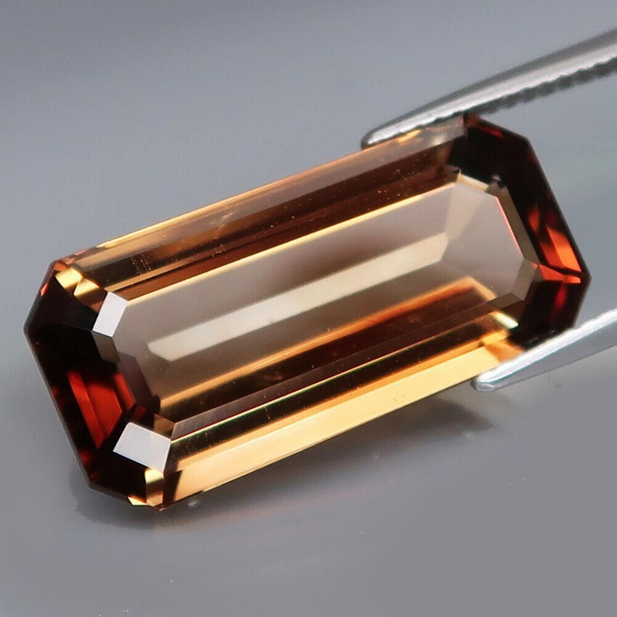 Imperial Topaz ;SHAPE Emerald Cut; WEIGHT 18.00 Ct.SIZE - 22.1 X 10.5 X 7.2 mm QUANTITY 1 Piece; COLOR Champagne; CLARITY ORIGIN Brazil TREATMENT Radiated HARDNESS 8
