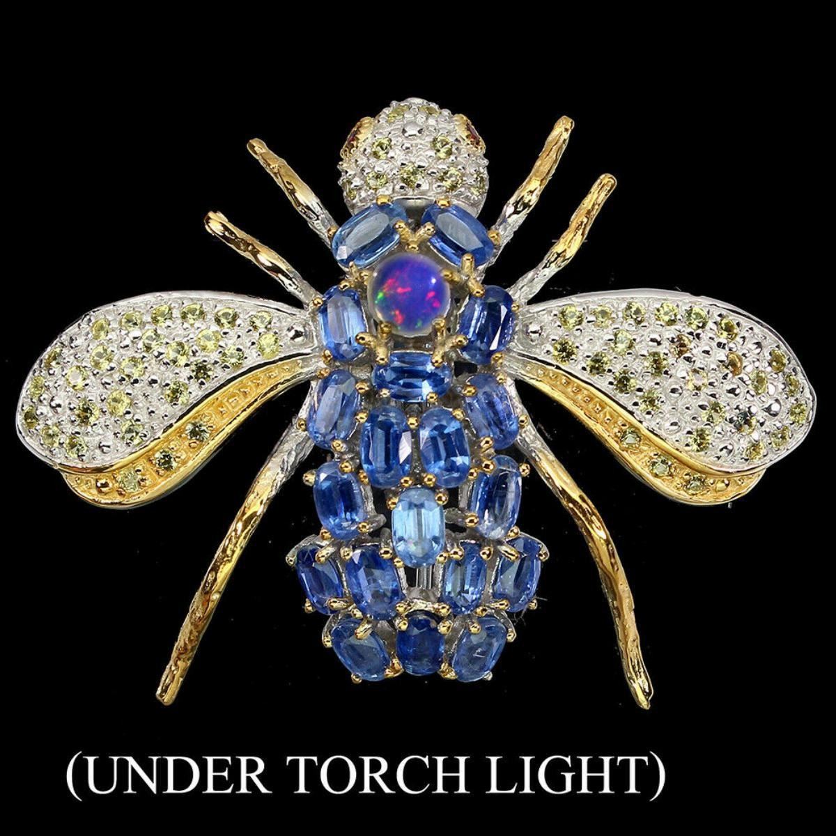 925 STERLING SILVER;PLATE-2-TONE WHITE & YELLOW 14K GOLD;OTHER GEMS-FIRE OPAL, RHODOLITE GARNET, SAPPHIRE;TOTAL WEIGHT-11.96 GRAM (TOTAL WEIGHT OF SILVER + STONE)DIMENSION-* STONE 1.0 TO 5.0 X 3.0 MM. * FACE BROOCH 52.0 X 38.0 MM.MAIN STONE SHAPE-OVAL CUT;MAIN STONE COLOR-TOP CORNFLOWER BLUE;CLARITY/GRADE-TRANSPARENT;LUSTER-PRECIOUS;TREATMENT-UNHEATED;HARDNESS-5.0 - 7.0;