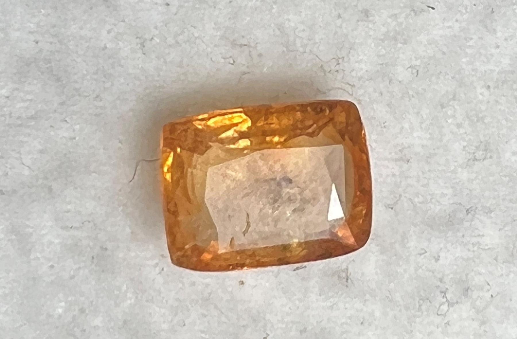 Natural Orange Ceylon Sapphire; Weight-5.19 Cts; Size-8.6.x11.25 MM; Shape- Cushion; Color - Orange; Clarity - SI; Origin- Ceylon; Gently heated only....natural earth mined.