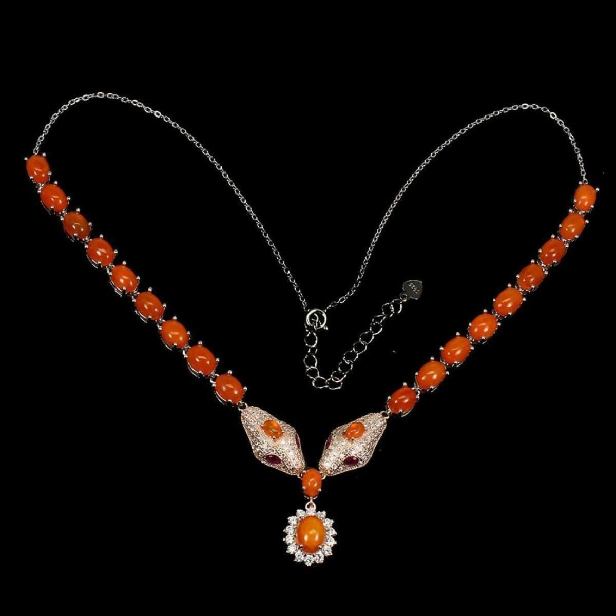 925 STERLING SILVER;PLATE-2-TONE WHITE & ROSE 14K GOLD;LENGTH (INCHES)-16.5;MAIN STONE-ORANGE FIRE OPAL;OTHER GEMS-CUBIC ZIRCONIA;TOTAL WEIGHT-17.19 GRAM (TOTAL WEIGHT OF SILVER + STONE)DIMENSION* STONE 5.0 X 3.0 TO 8.0 X 6.0 MM. * CZ 1.0 TO 3.0 X 2.0 MM. * STONES PART LENGTH 195.0 X 21.0 MM.;MAIN STONE SHAPE-OVAL CABOCHON;MAIN STONE COLOR-TOP RICH ORANGE;ORIGIN-ETHIOPIA;HARDNESS-5;