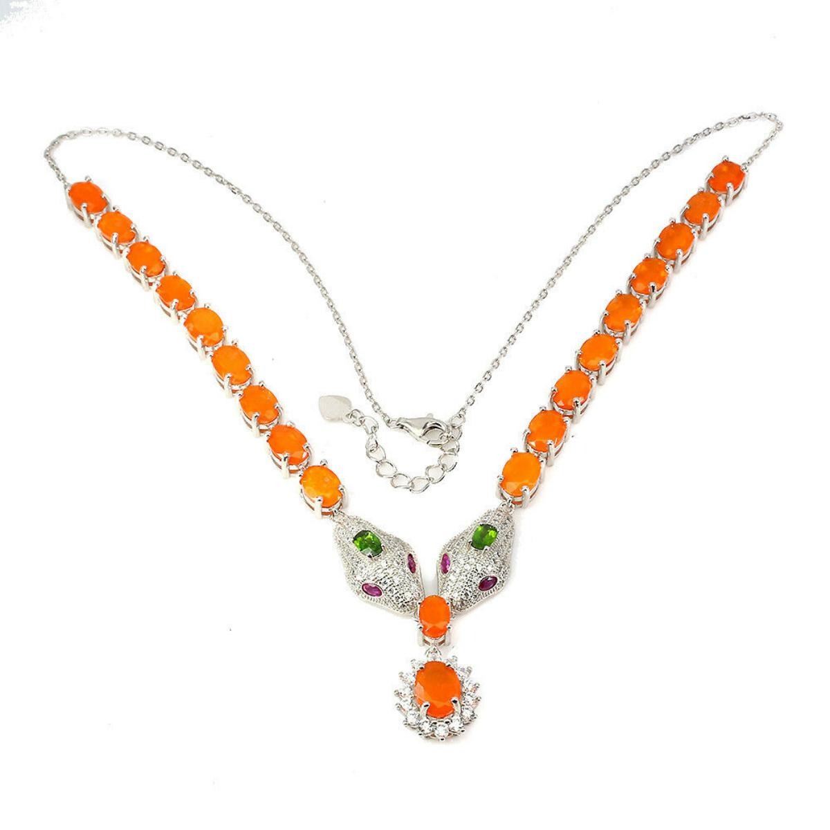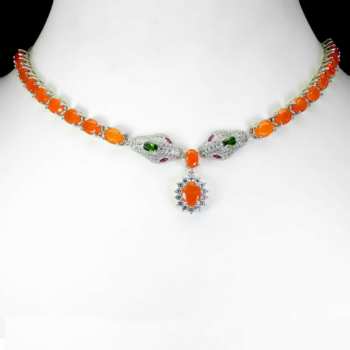 925 STERLING SILVER;PLATE-14K WHITE GOLD;LENGTH (INCHES)-18;MAIN STONE-ORANGE FIRE OPAL;OTHER GEMS-CHROME DIOPSIDE;TOTAL WEIGHT-17.07 GRAM (TOTAL WEIGHT OF SILVER + STONE);DIMENSION-* STONE 5.0 X 3.0 TO 8.0 X 6.0 MM.* TOTAL LENGTH 18.0 INCHES.* STONES PART LENGTH 210.0 X 10.0 MM.;MAIN STONE SHAPE-OVAL CUT;MAIN STONE COLOR- RICH ORANGE;CLARITY/GRADE-IF TO VVS;ORIGIN-ETHIOPIA;HARDNESS-5.0;