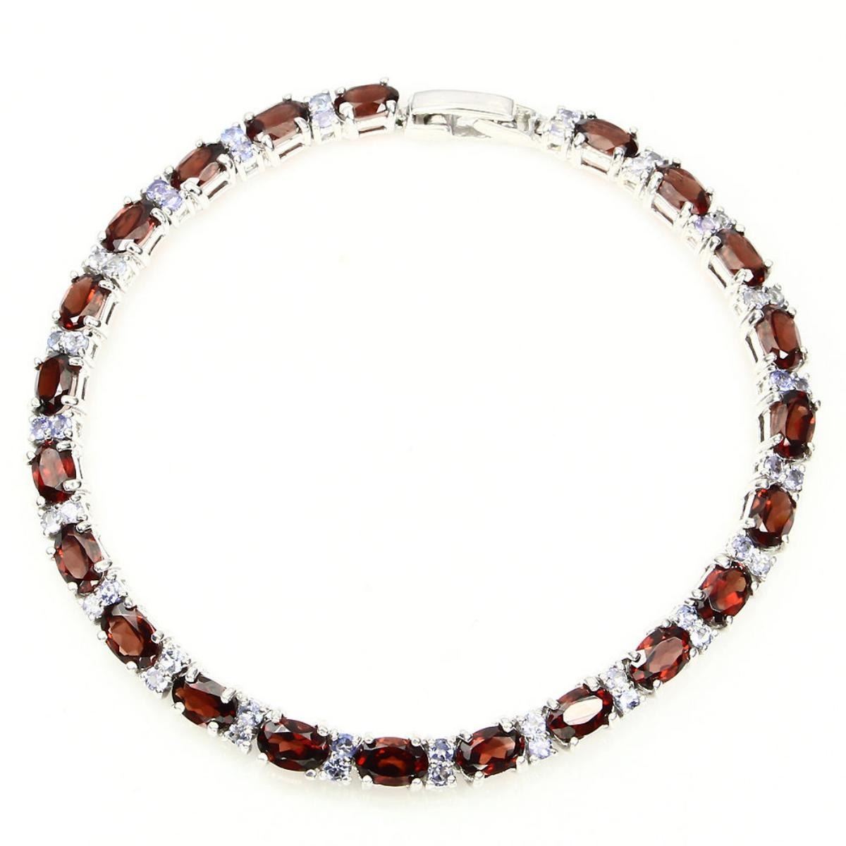 925 STERLING SILVER; PLATE -14K WHITE GOLD; LENGTH (INCHES) 7.5; MAIN STONE -MOZAMBIQUE GARNET; OTHER GEMS -TANZANITE; TOTAL WEIGHT -69.90 CT (TOTAL WEIGHT OF SILVER + STONE) DIMENSION * STONE 2.0 TO 6.0 X 4.0 MM. * FACE BRACELET 180.0 X 5.0 MM. MAIN STONE SHAPE -OVAL CUT; MAIN STONE COLOR -TOP RICH ORANGE; CLARITY/GRADE -IF TO VVS; TREATMENT -UNHEATED; ORIGIN -AFRICA; HARDNESS -7.0 - 7.5