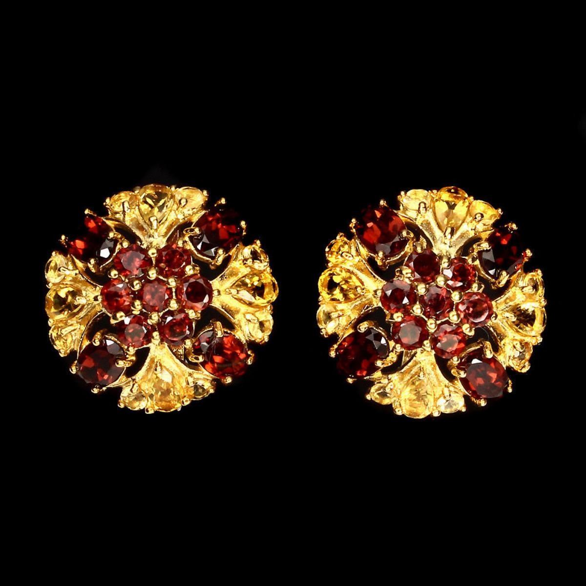 925 STERLING SILVER;PLATE...14K YELLOW GOLD;MAIN STONEMOZAMBIQUE GARNET;OTHER GEMSCITRINE;TOTAL WEIGHT44.86 CT (TOTAL WEIGHT OF SILVER + STONE)DIMENSION* STONE 2.5 TO 6.0 X 4.0 MM. * FACE EARRINGS 21.0 MM.MAIN STONE SHAPEROUND CUT;MAIN STONE COLORTOP RICH ORANGE;CLARITY/GRADEIF;LUSTERBEWITCHING;TREATMENTUNHEATED;ORIGINAFRICA;HARDNESS7.0 - 7.5;