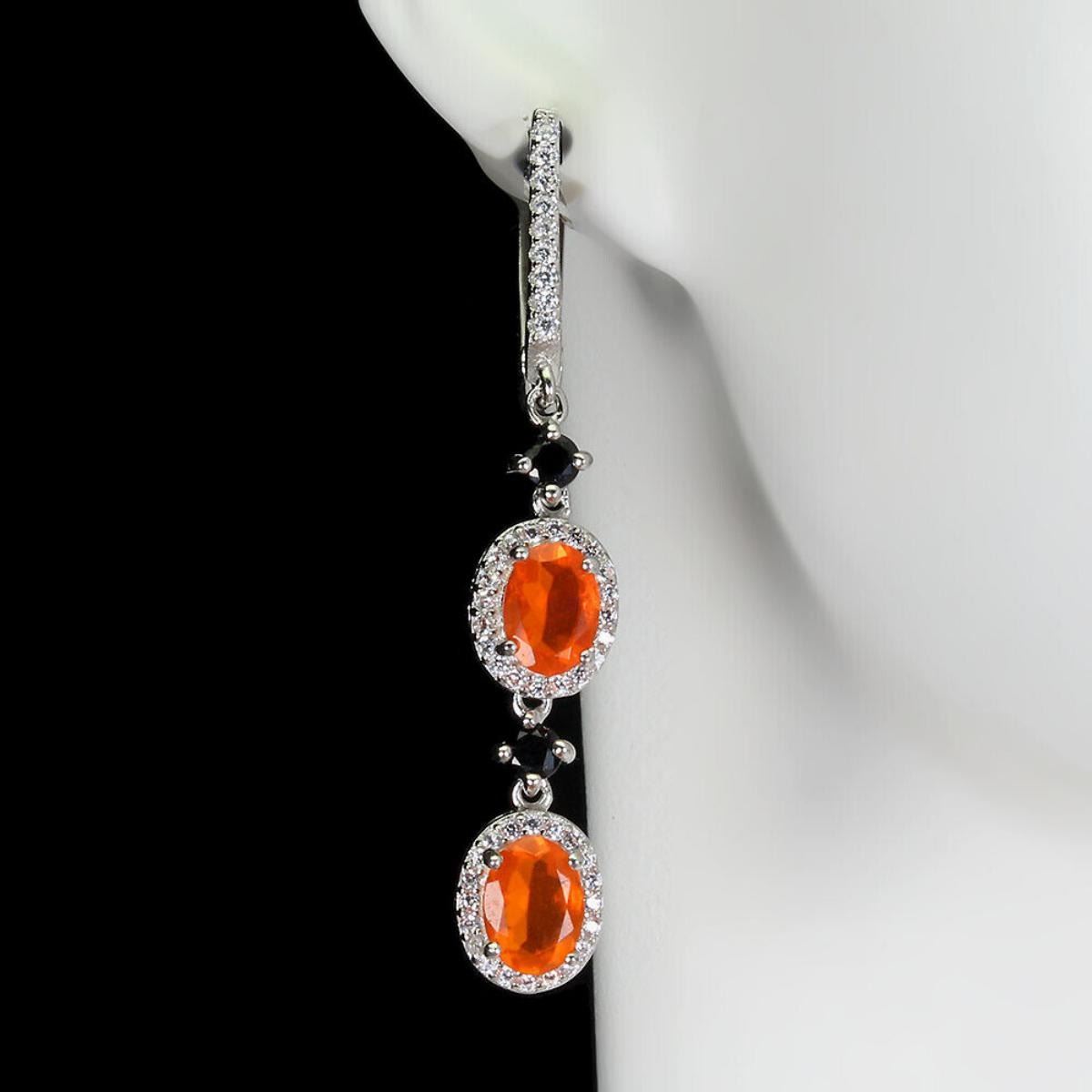 925 STERLING SILVER;PLATE-14K WHITE GOLD;MAIN STONE-ORANGE OPAL;OTHER GEMS-BLACK SPINEL;TOTAL WEIGHT-6.42 GRAM (TOTAL WEIGHT OF SILVER + STONE);DIMENSION-* STONE 3.0 TO 7.0 X 5.0 MM. * FACE EARRINGS 44.0 X 8.0 MM.;MAIN STONE SHAPE-OVAL ;MAIN STONE COLOR-ORANGE;CLARITY/GRADE-IF TO VVS;ORIGIN-ETHIOPIA;HARDNESS-5.5 - 6.5;