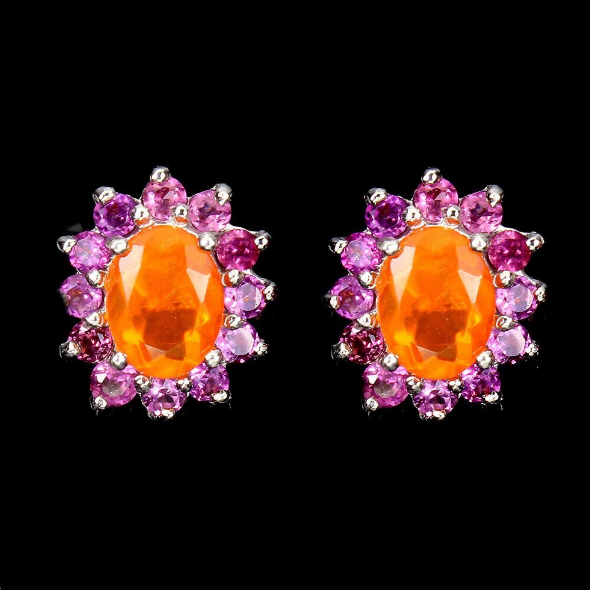 925 STERLING SILVER;PLATE-14K WHITE GOLD;MAIN STONE-ORANGE OPAL;OTHER GEMS-RHODOLITE GARNET;TOTAL WEIGHT-4.11 GRAM (TOTAL WEIGHT OF SILVER + STONE)DIMENSION-* STONE 2.5 TO 8.0 X 6.0 MM.;* FACE EARRINGS- 13.0 X 11.0 MM.;MAIN STONE SHAPE-OVAL CUT;MAIN STONE COLOR-- RICH ORANGE;CLARITY/GRADE-IF;TREATMENT-Yes;ORIGIN-MEXICO;