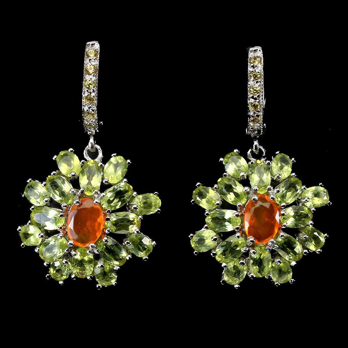 925 STERLING SILVER;PLATE-14K WHITE GOLD;MAIN STONE-ORANGE OPAL;OTHER GEMS-PERIDOT, SAPPHIRE;TOTAL WEIGHT-6.54 GRAM (TOTAL WEIGHT OF SILVER + STONE)DIMENSION-* STONE 1.5 TO 7.0 X 5.0 MM.;* FACE EARRINGS- 35.0 X 20.0 MM.;MAIN STONE SHAPE-OVAL CUT;MAIN STONE COLOR;-ORANGE;CLARITY/GRADE-IF;ORIGIN-MEXICO;HARDNESS-5.5 - 6.5;