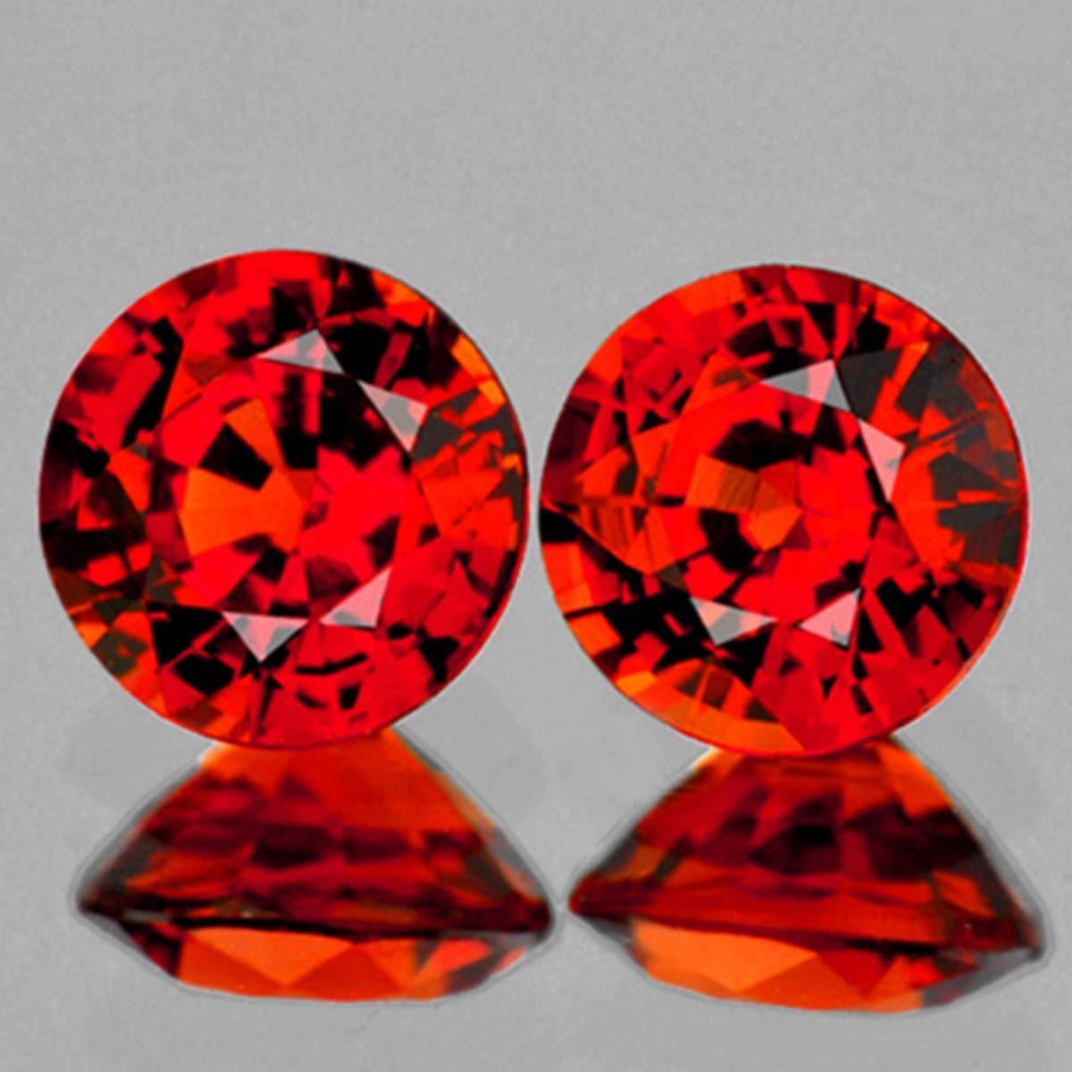 Natural Spessartite Garnet WEIGHT : 2.03 cts... SHAPE : Round SIZE ( L x W x D ) : 5.50 mm QUANTITY : 2 pieces (Perfectly Matched Pair) COLOR : Orange Red CLARITY : VS-SI ORIGIN : Nigeria HARDNESS : 7.5 LUSTER : Excellent!!! TREATMENT : 100% Natural Unheated