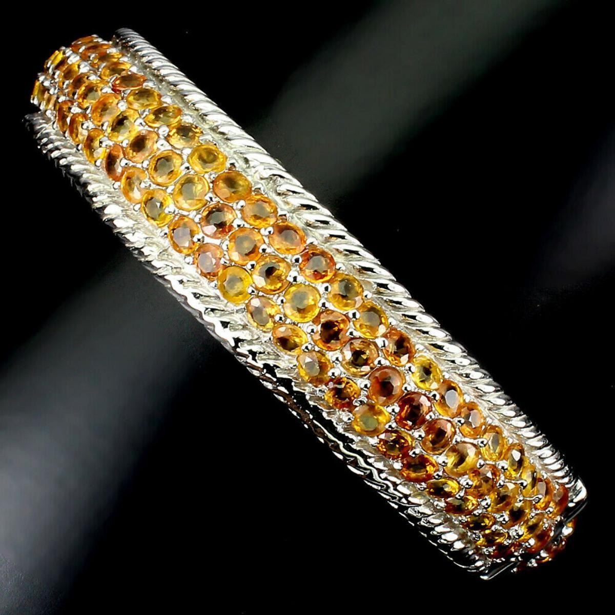 925 STERLING SILVER;PLATE-14K WHITE GOLD;;RING SIZE/LENGTH (INCHES)1.9;MAIN STONE-SAPPHIRE;TOTAL WEIGHT-32.06 GRAM (TOTAL WEIGHT OF SILVER + STONE)DIMENSION* STONE 2.5 MM. * DIAMETER 1.9 INCHES. * FACE BANGLE 62.0 X 13.0 MM.;MAIN STONE SHAPE-ROUND CUT;MAIN STONE COLOR-TOP RICH ORANGE;CLARITY/GRADE-IF TO VVS;ORIGIN - MADAGASCARHARDNESS-9