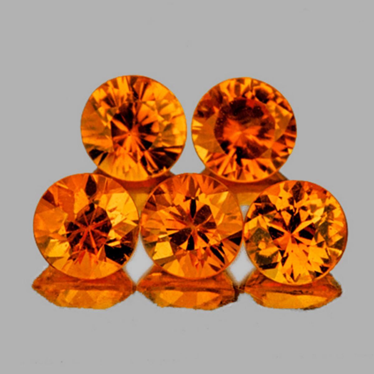 Natural Sapphire WEIGHT : 1.21 cts; SHAPE : Round (Machine Brilliant Cut); SIZE ( L x W x D ) : 3.60 mm; QUANTITY : 5 pieces ( Perfectly Matched Set) COLOR : Orange AAA Color; CLARITY : Flawless-VVS; AAA Grade; ORIGIN : Ceylon; HARDNESS : 9; LUSTER : Best AAA Fire!!! TREATMENT : Heated;