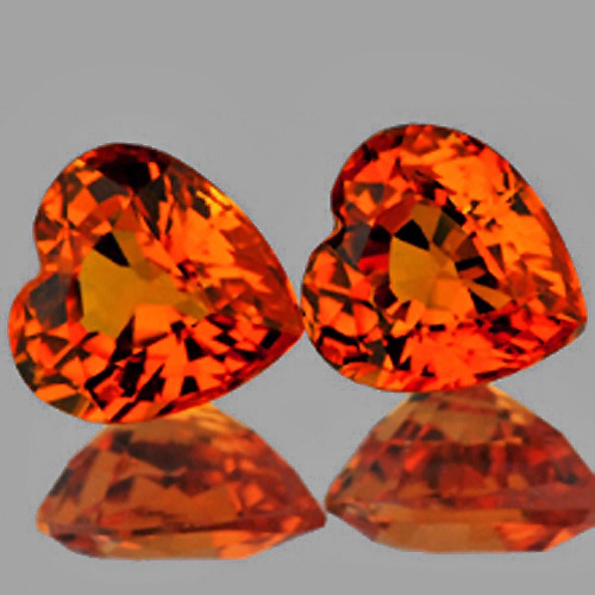 Natural Sapphire; WEIGHT : 0.65 cts; SHAPE : Heart; SIZE ( L x W x D ) : 4.20 mm; QUANTITY : 2 pieces (Perfect Matching Pair) COLOR : Intense Orange AAA Color; CLARITY : Flawless-VVS; AAA Grade; ORIGIN : Ceylon; HARDNESS : 9; LUSTER : Best AAA Fire!!! TREATMENT : Heated;