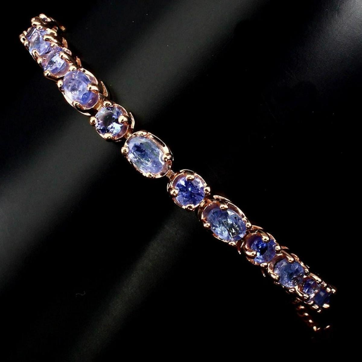 925 STERLING SILVER;PLATE14K ROSE GOLD;LENGTH (INCHES)8.5;MAIN STONETANZANITE;TOTAL WEIGHT68.32 CT (TOTAL WEIGHT OF SILVER + STONE)DIMENSION* STONE 4.0 TO 6.0 X 4.0 MM. * FACE BRACELET 173.0 X 5.0 MM.MAIN STONE SHAPEOVAL CUTMAIN STONE COLORTOP RICH BLUE VIOLETCLARITY/GRADETRANSPARENTLUSTERMESMERIZINGTREATMENTUNHEATEDORIGINTANZANIA - AFRICAHARDNESS7.0 - 7.5