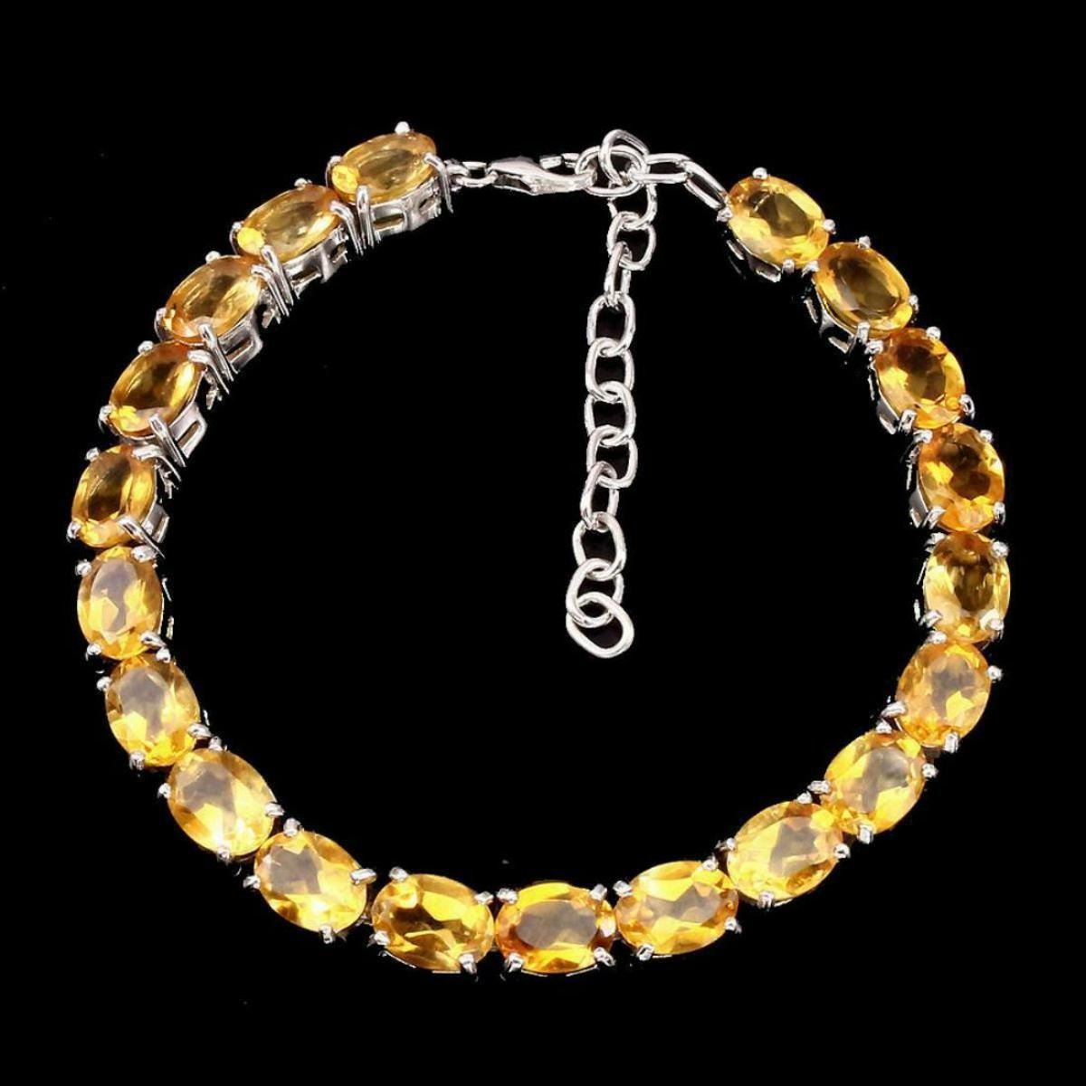 925 STERLING SILVER;PLATE...14K WHITE GOLD;;LENGTH (INCHES)9.5.MAIN STONECITRINE.......TOTAL WEIGHT97.33 CT (TOTAL WEIGHT OF SILVER + STONE)DIMENSION* STONE 8.0 X 6.0 MM. * FACE BRACELET 170.0 X 6.0 MM.MAIN STONE SHAPEOVAL CUTMAIN STONE COLORTOP RICH YELLOWCLARITY/GRADEIF TO VVSLUSTERMESMERIZINGTREATMENTUNHEATEDORIGINBRAZILHARDNESS7