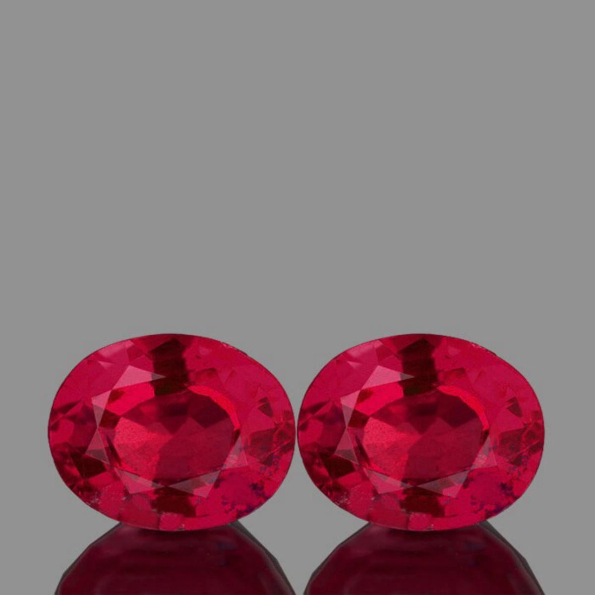 Natural Ruby; SHAPE : Oval SIZE ( L x W x D ) : 7.00 x 5.00 mm; QUANTITY : 2 pieces (Perfectly Matched Pair) COLOR : Red ; CLARITY : VS; ORIGIN : Mozambique ,Africa; HARDNESS : 9; LUSTER : Excellent!!! TREATMENT : Yes;